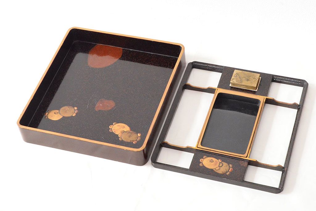 ラフジュ工房> 小物収納・トランク > 明治期 梨地螺鈿高蒔絵 鶏図 木製硯箱(漆器、書道具)(R-052792)