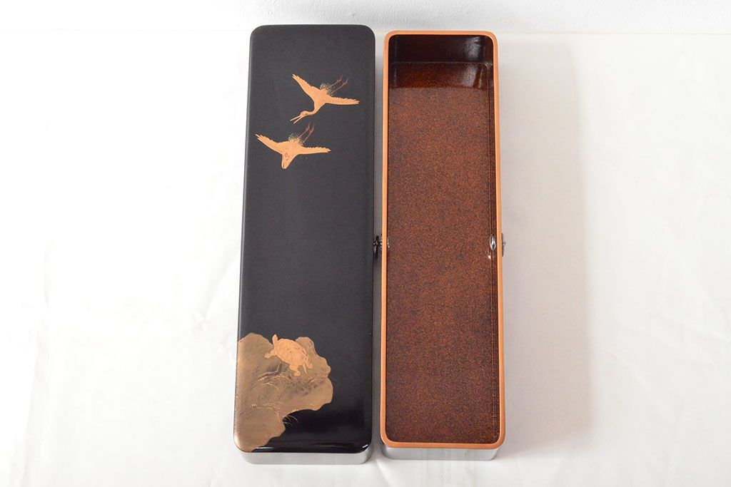 ラフジュ工房> 小物収納・トランク> 木箱 > 明治期 鶴亀の図 内梨地 蒔絵 木製文箱(書箱、漆器)(R-052793)