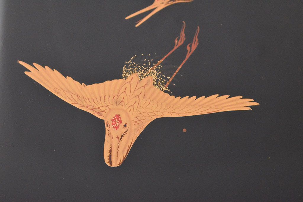 明治期 鶴亀の図 内梨地 蒔絵 木製文箱(書箱、漆器)(R-052793)