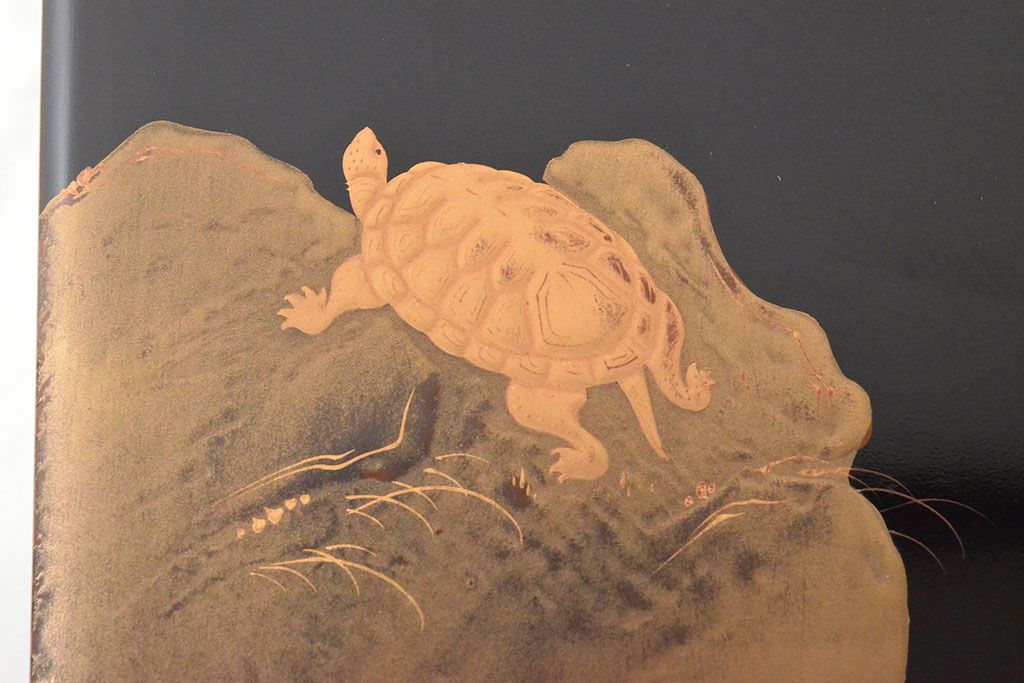 ラフジュ工房> 骨董・美術品> 骨董-漆器 > 明治期 鶴亀の図 内梨地 蒔絵 木製文箱(書箱、漆器)(R-052793)