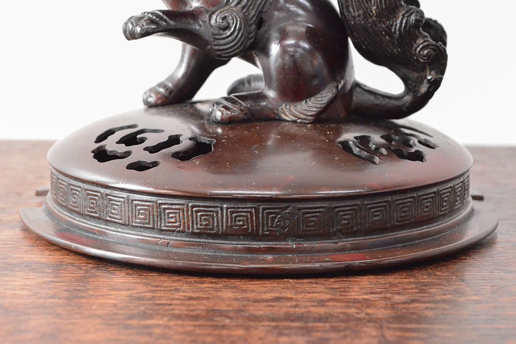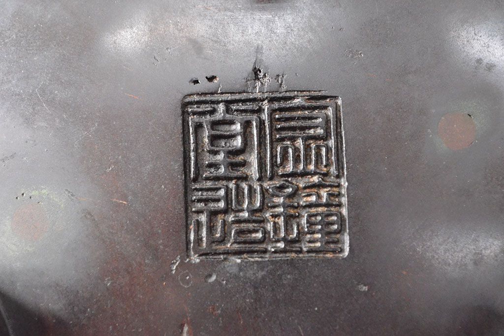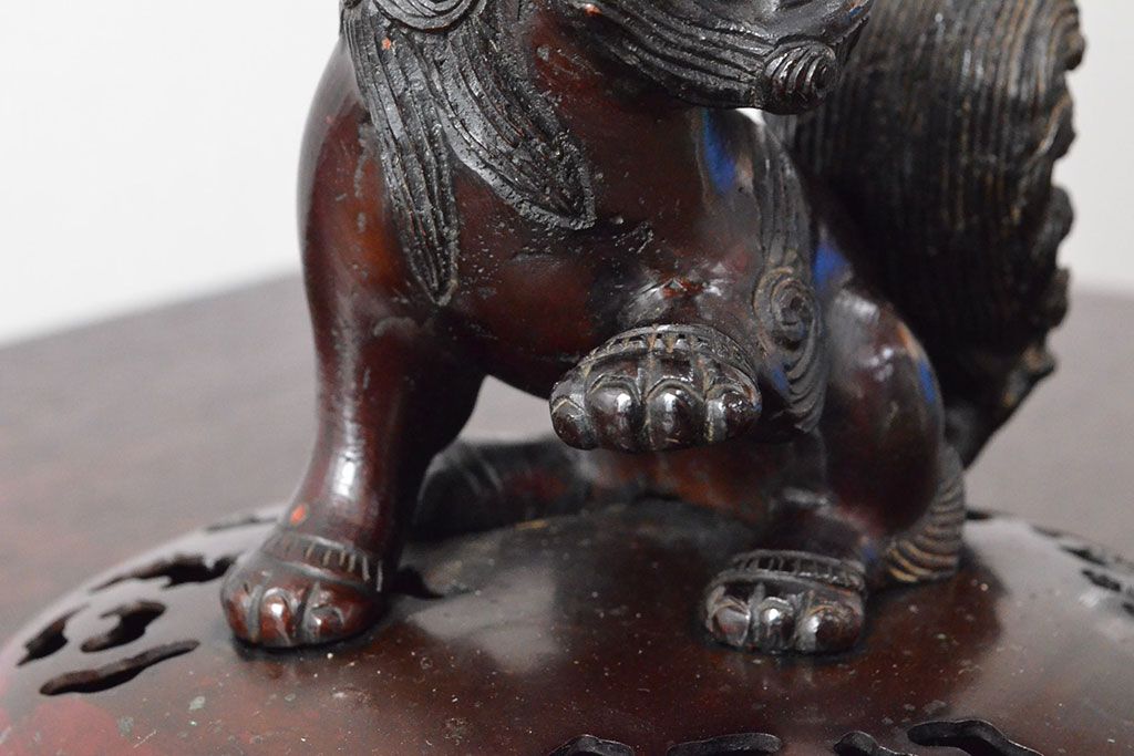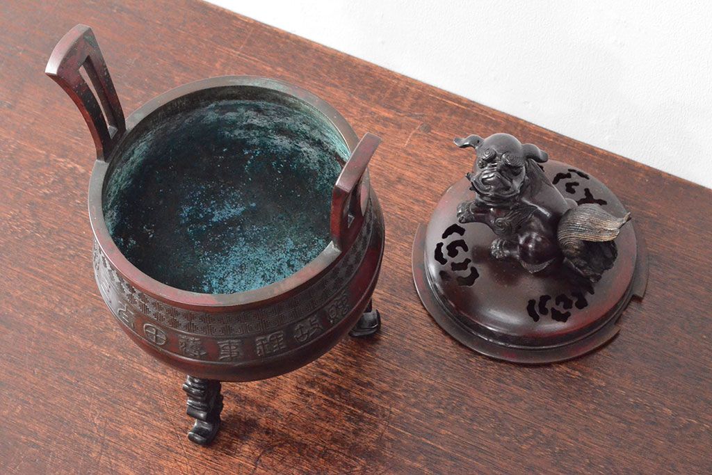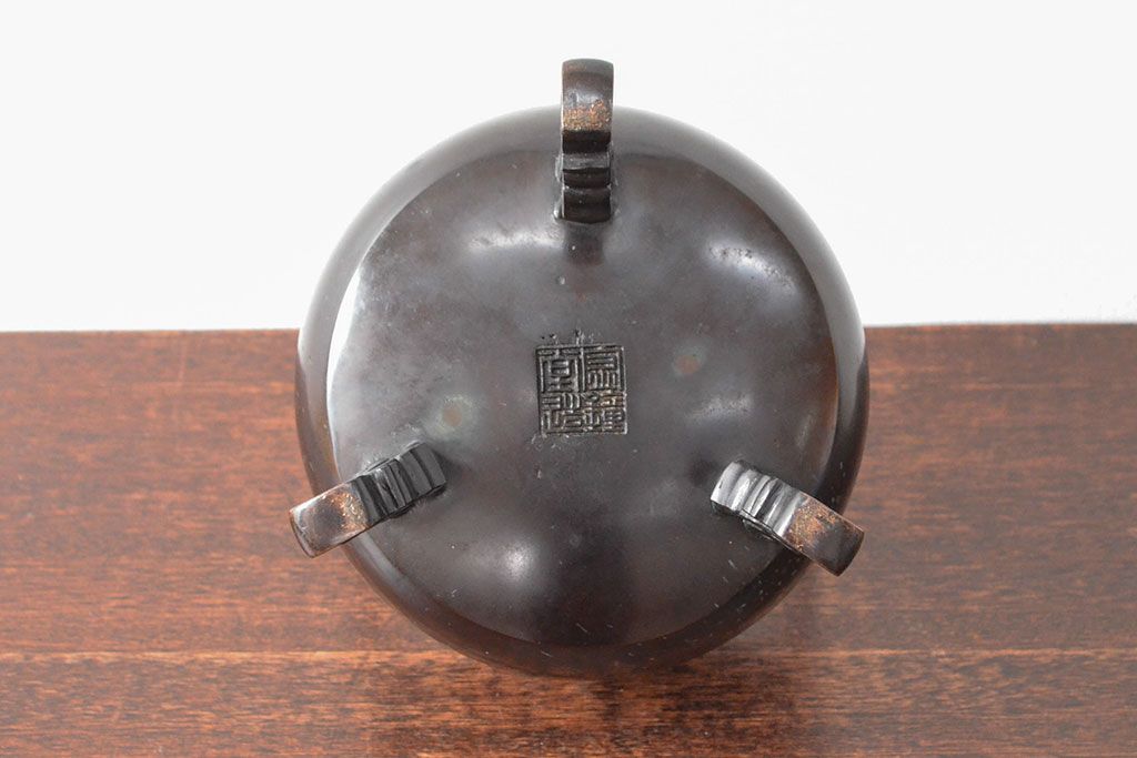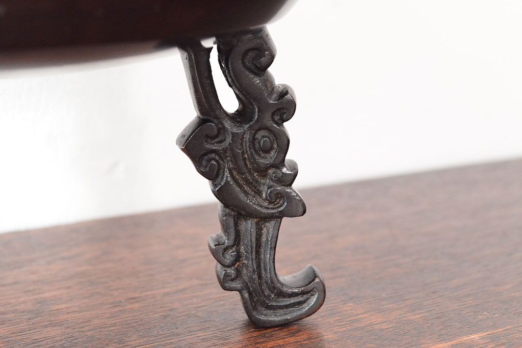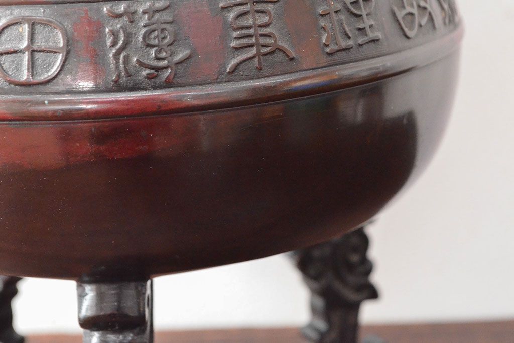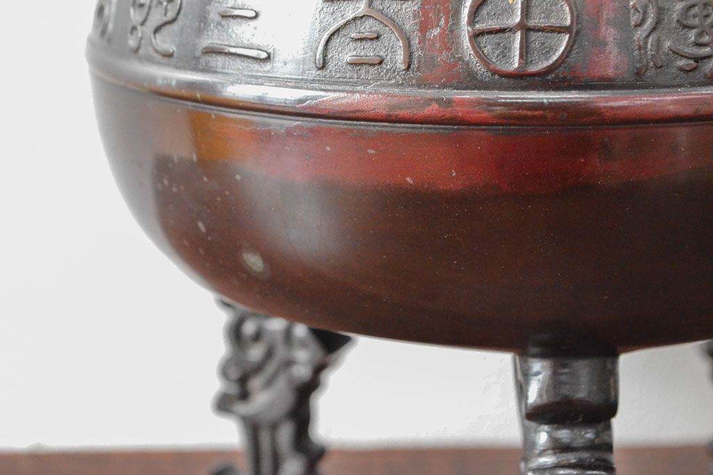 明治期 金鐘堂 紫銅鼎形 香炉(三足、唐獅子)(R-052794)