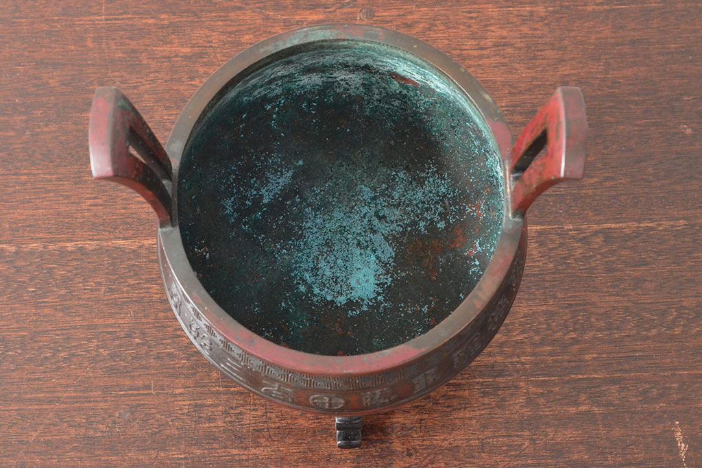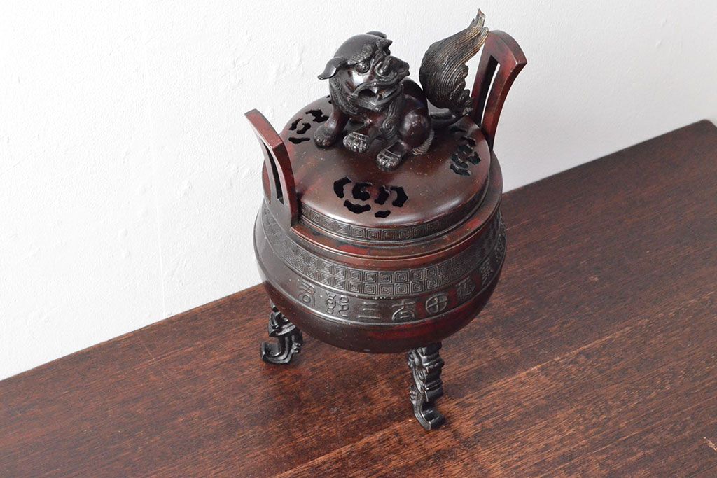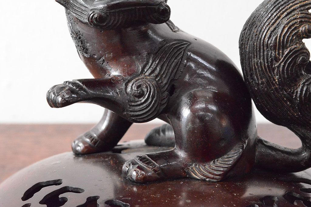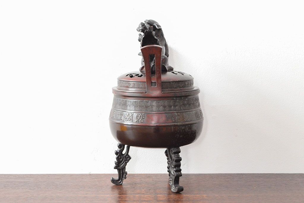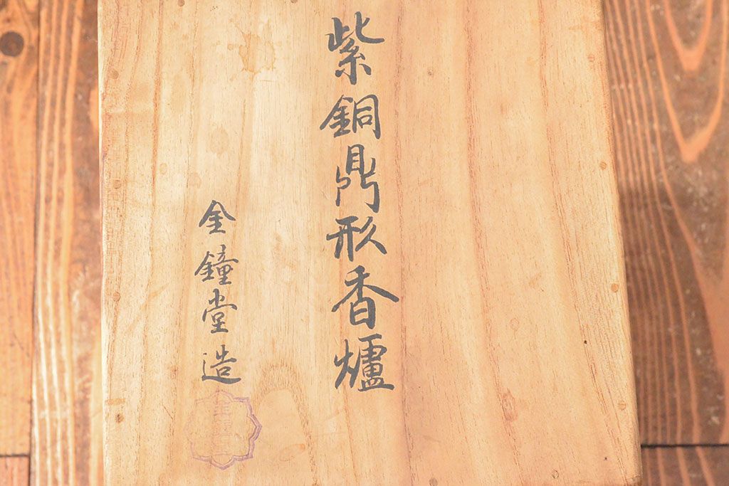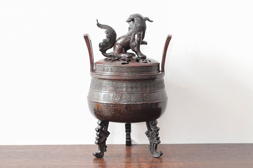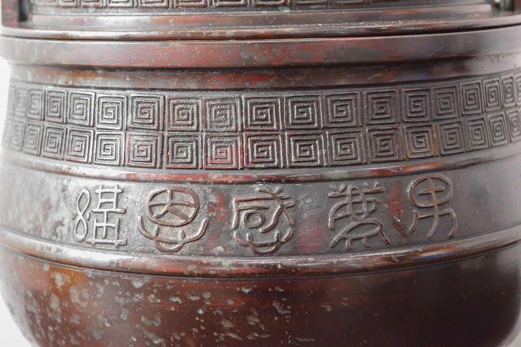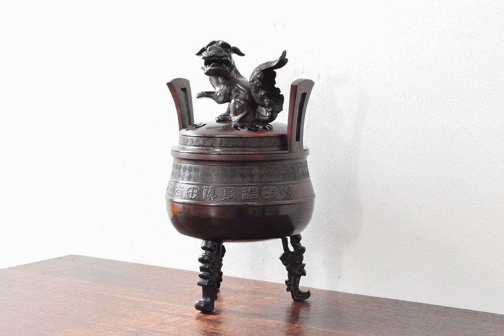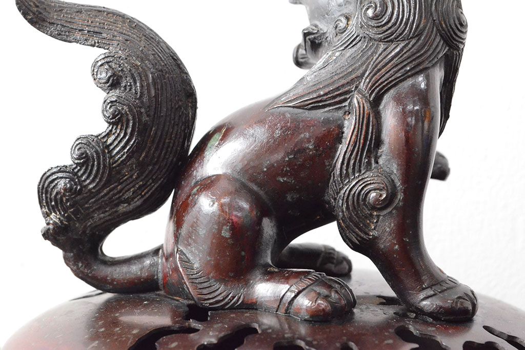 明治期 金鐘堂 紫銅鼎形 香炉(三足、唐獅子)(R-052794)