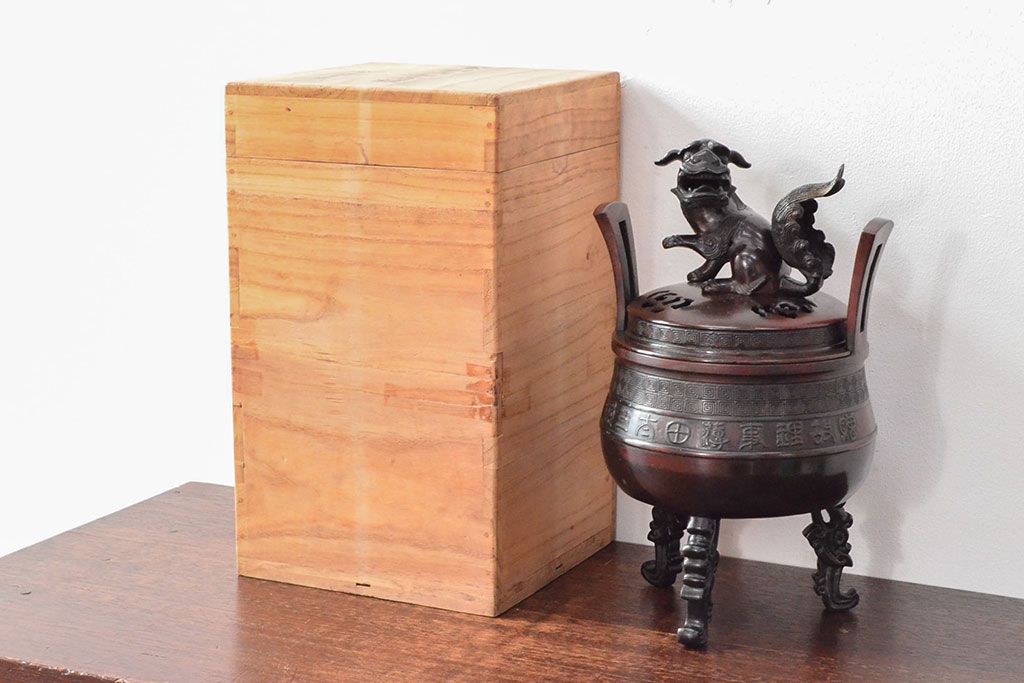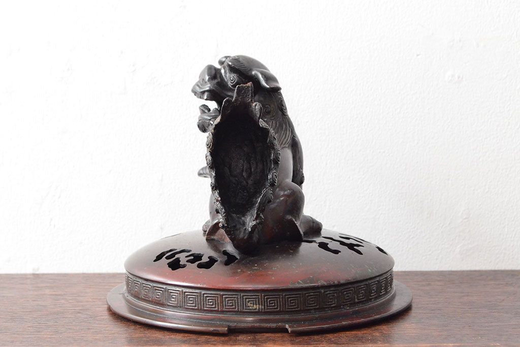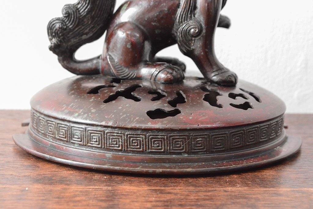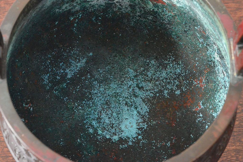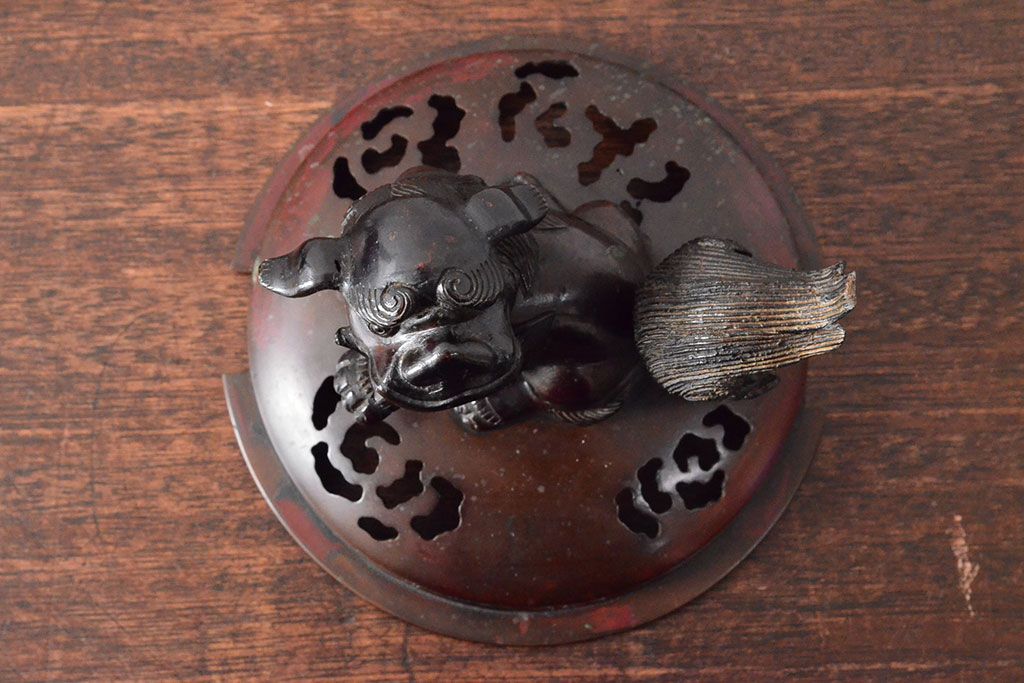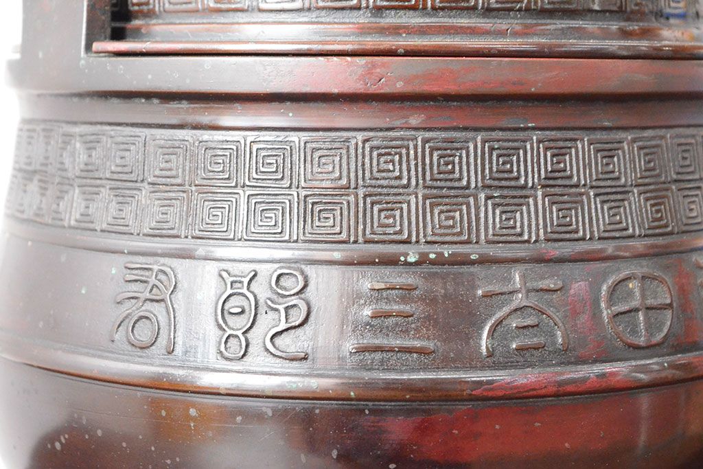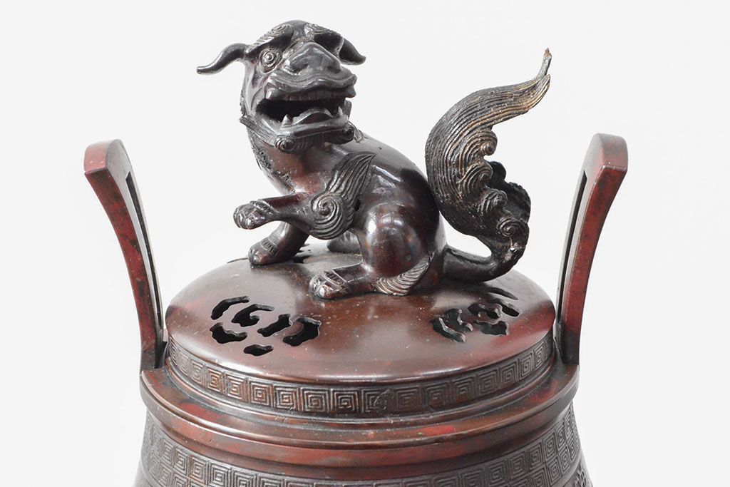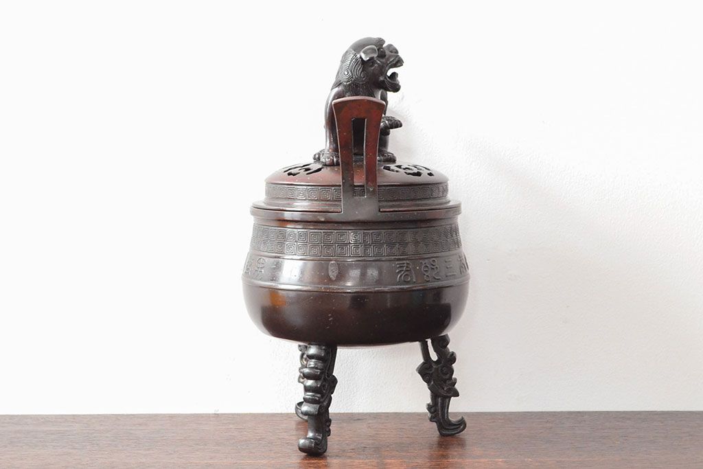 明治期 金鐘堂 紫銅鼎形 香炉(三足、唐獅子)(R-052794)