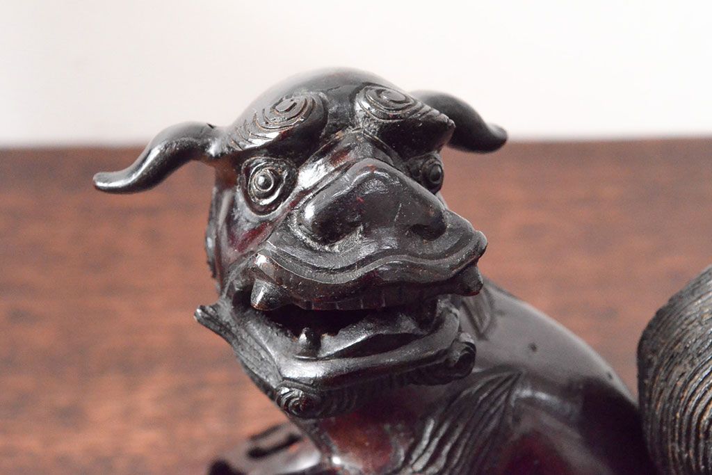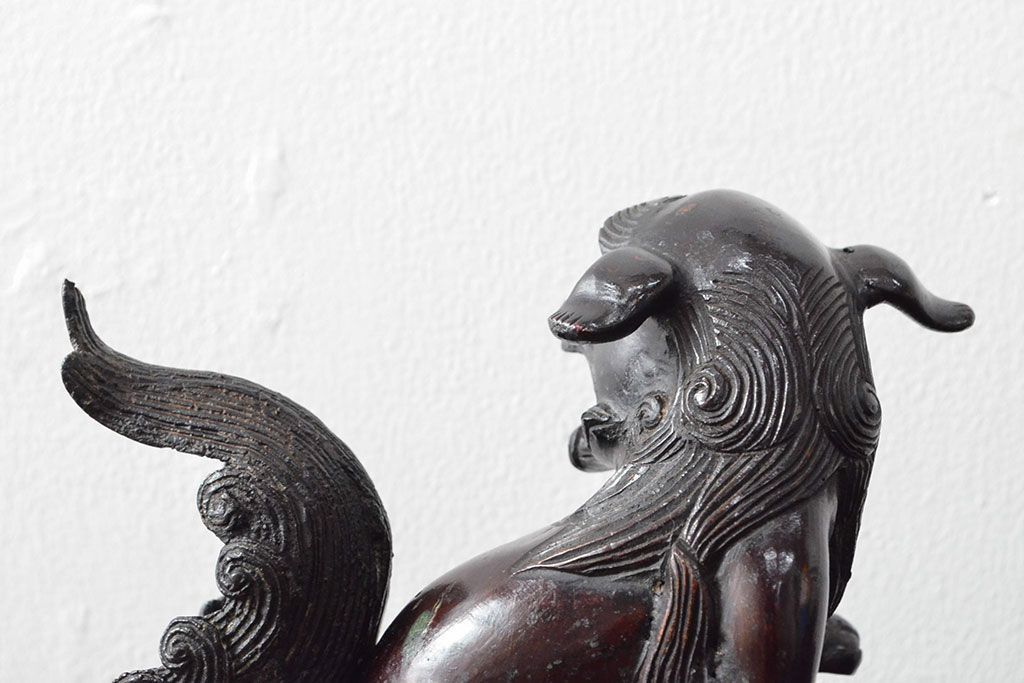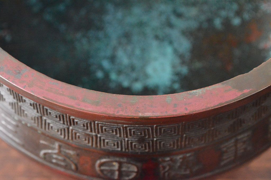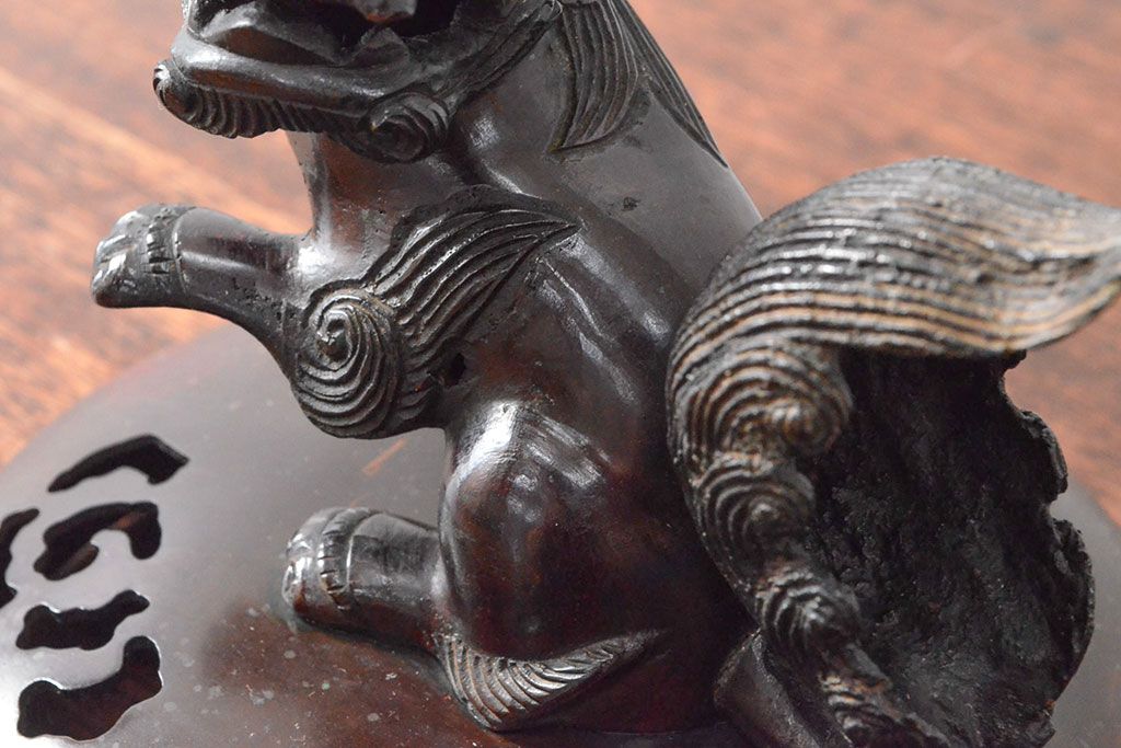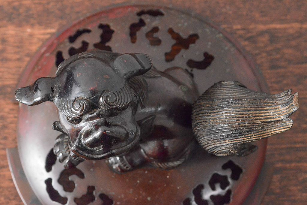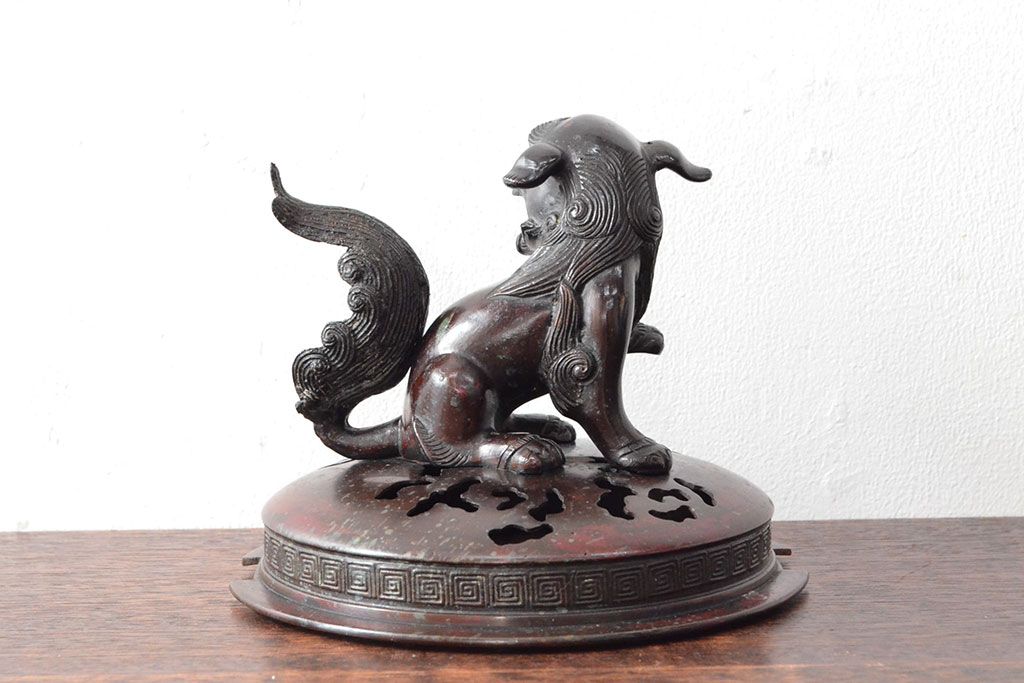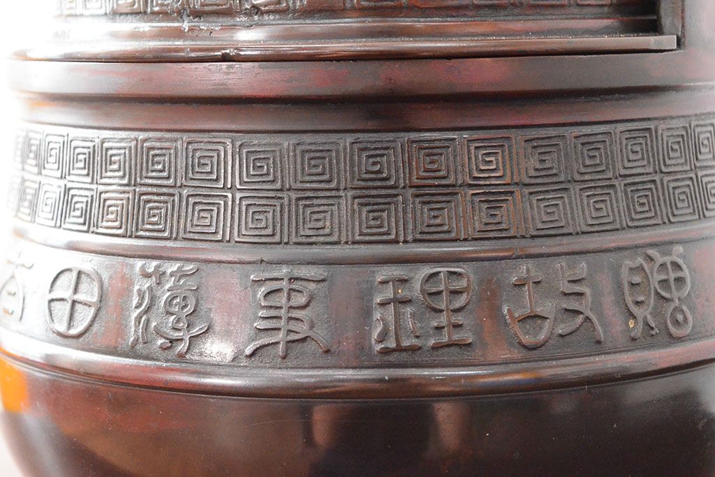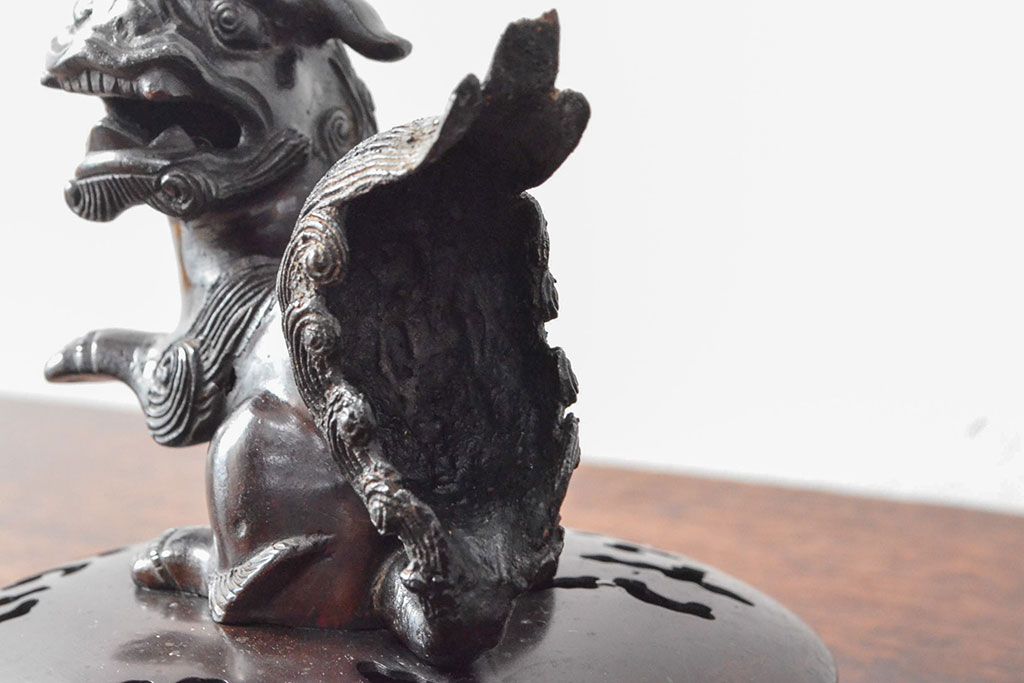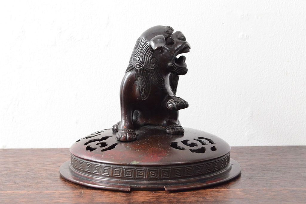明治期 金鐘堂 紫銅鼎形 香炉(三足、唐獅子)(R-052794)