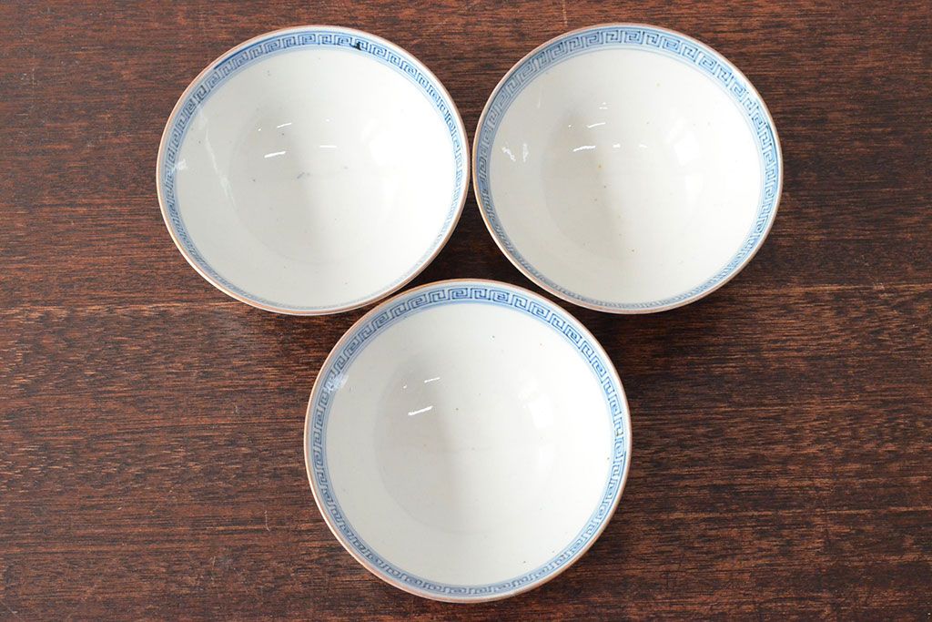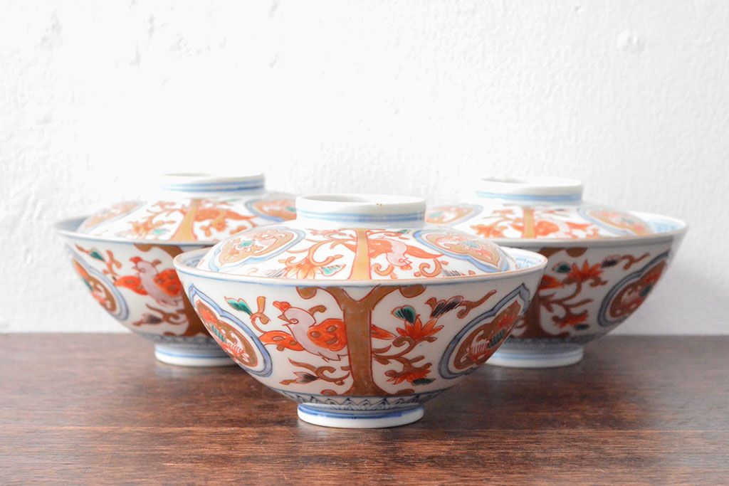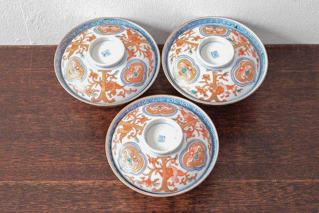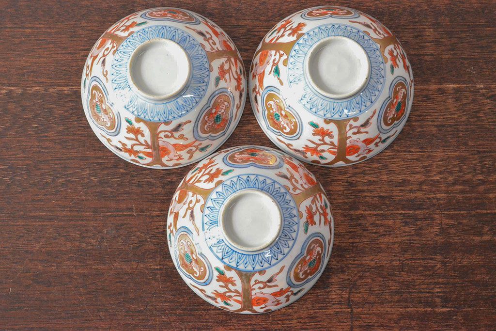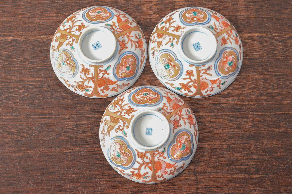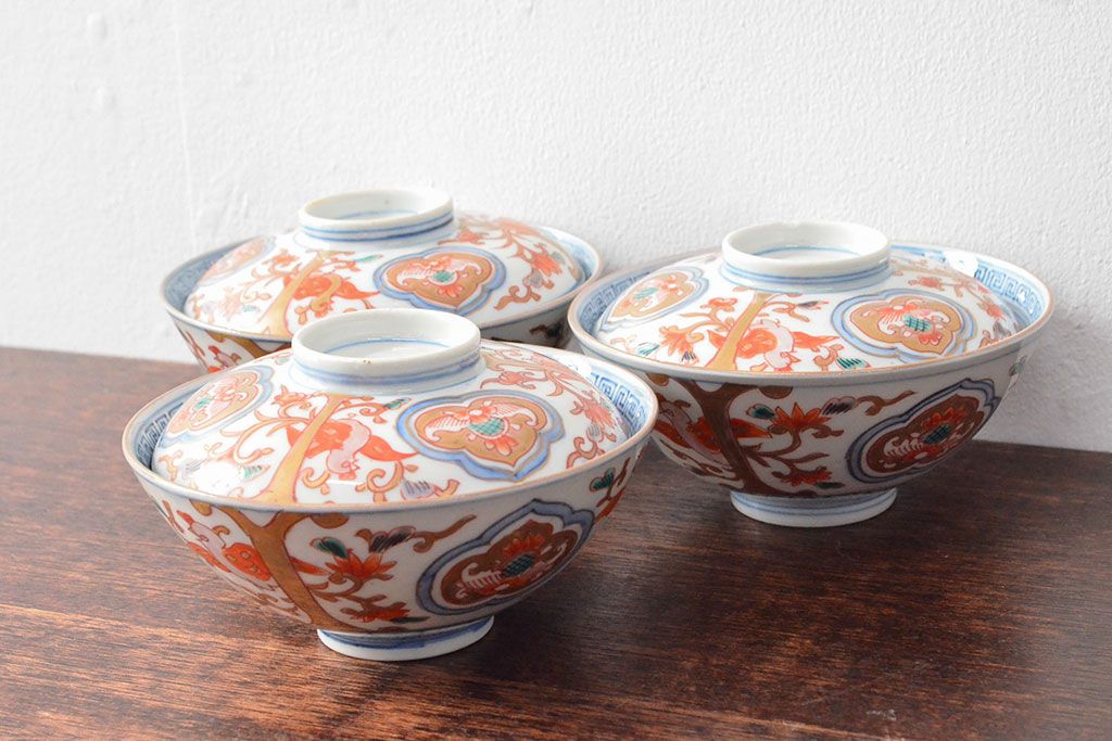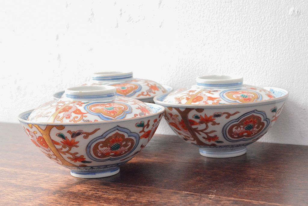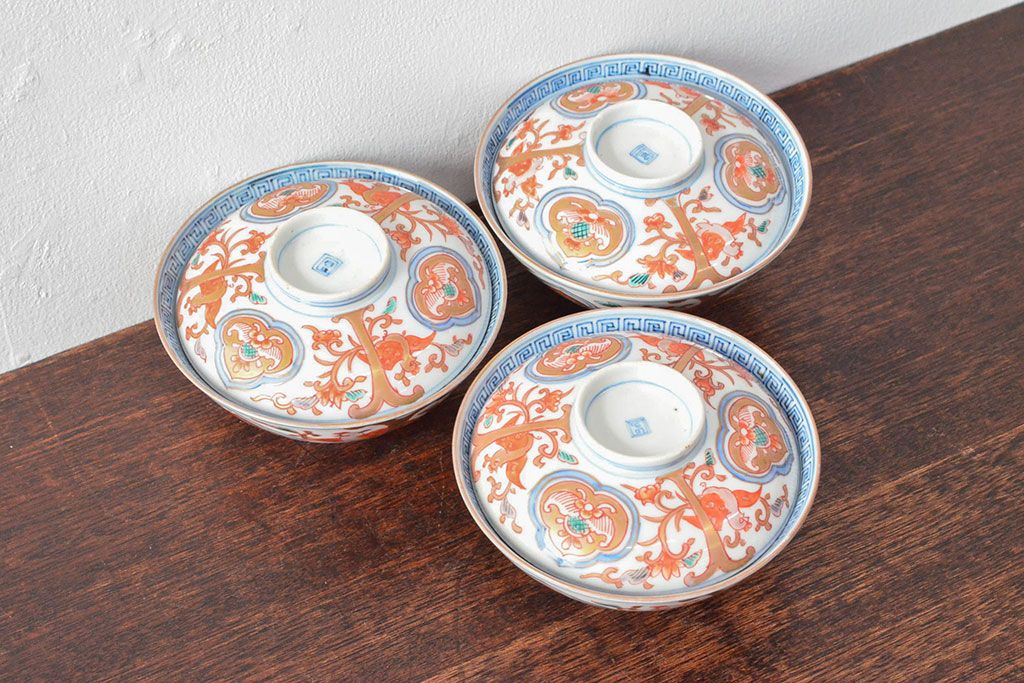 ラフジュ工房> 和食器・茶道具 > 幕末〜明治 色絵染付 蓋茶碗3客(和食器)(R-052808)