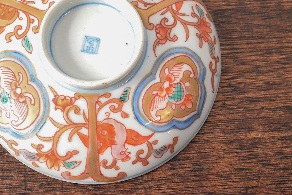 ラフジュ工房> 和食器・茶道具> お椀・茶碗 > 幕末〜明治 色絵染付 蓋茶碗3客(和食器)(R-052808)
