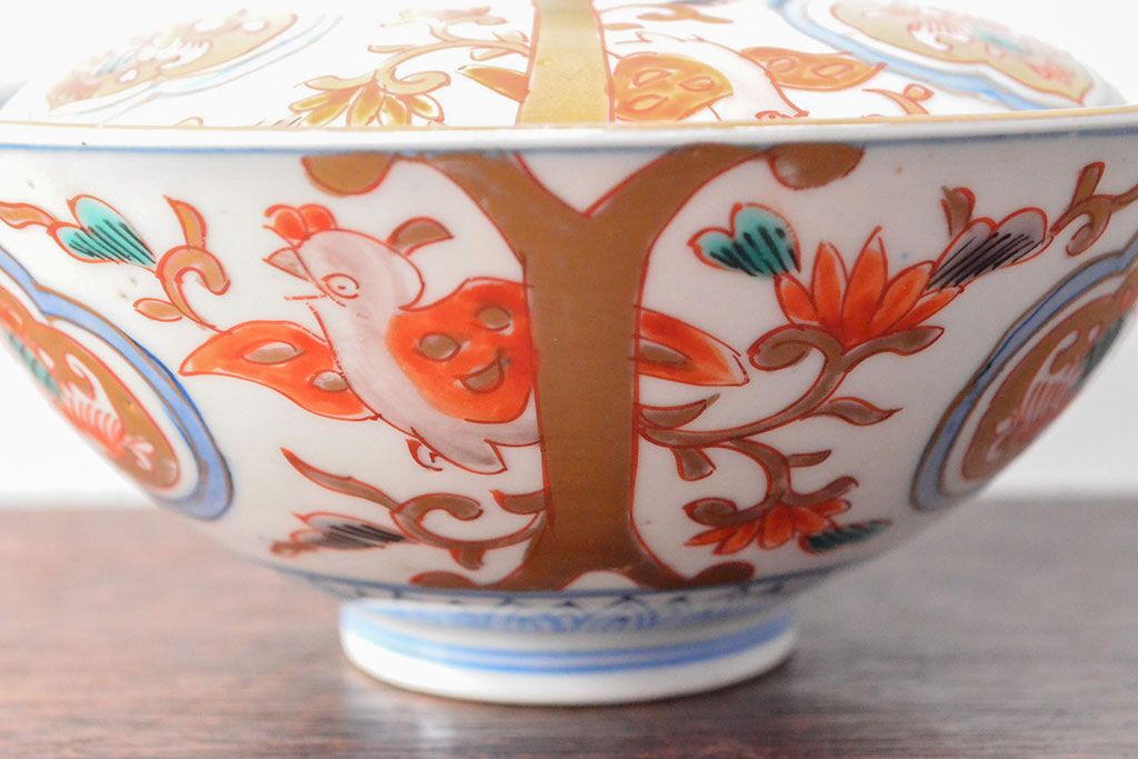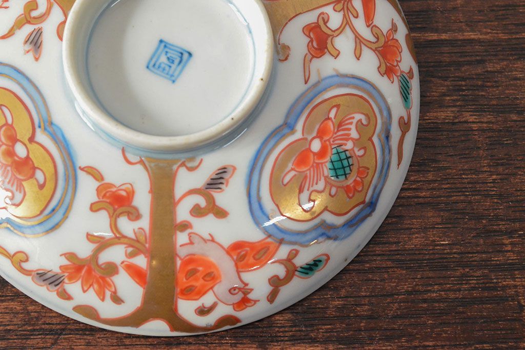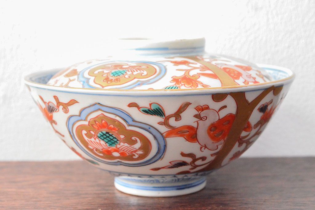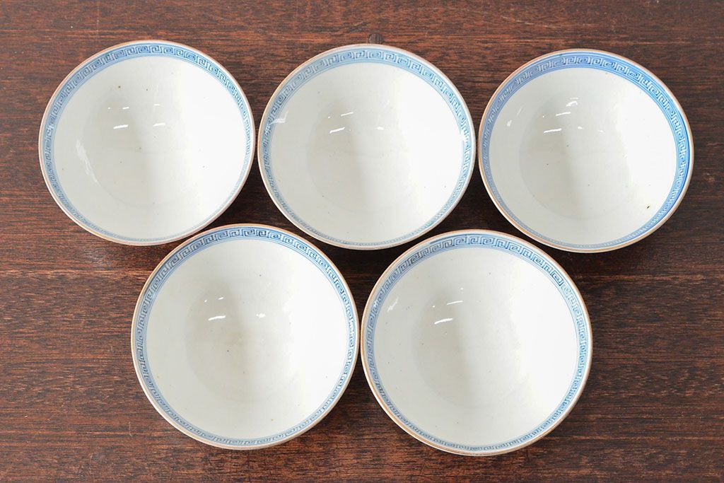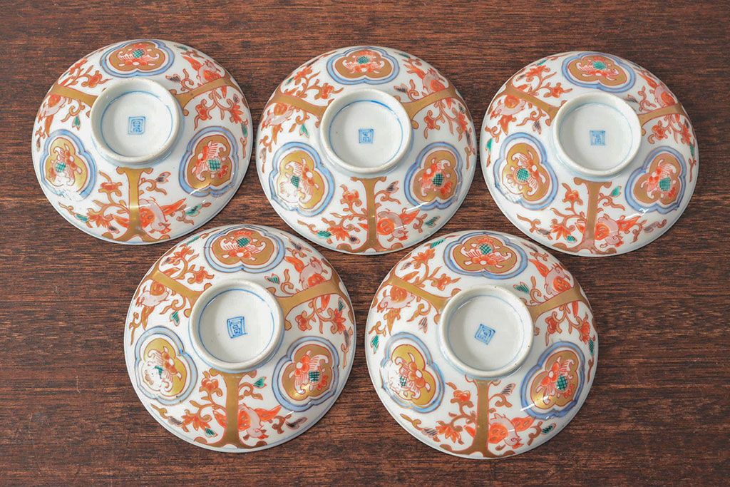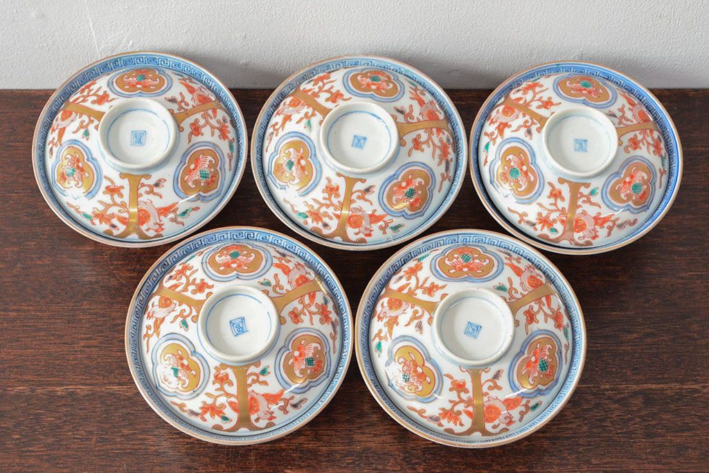 ラフジュ工房> 和食器・茶道具 > 幕末〜明治 色絵染付 蓋茶碗5客(和食器)(R-052813)
