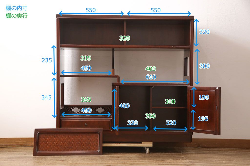 棚の寸法は画像4枚目に記載してありますので、そちらをご参考ください。
