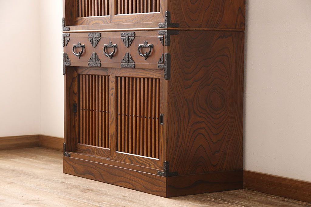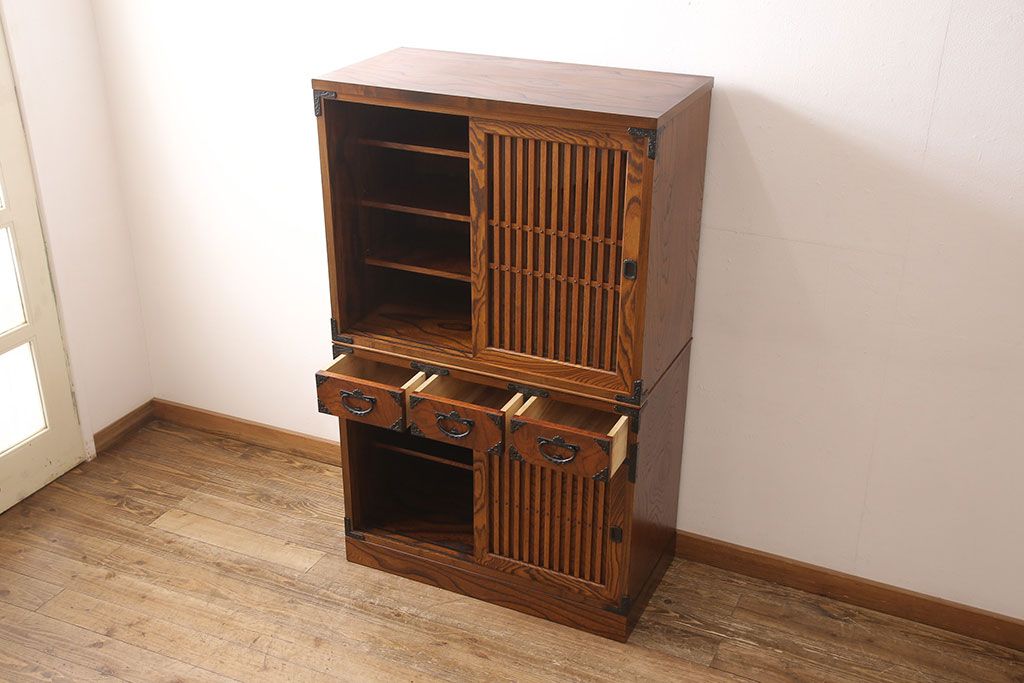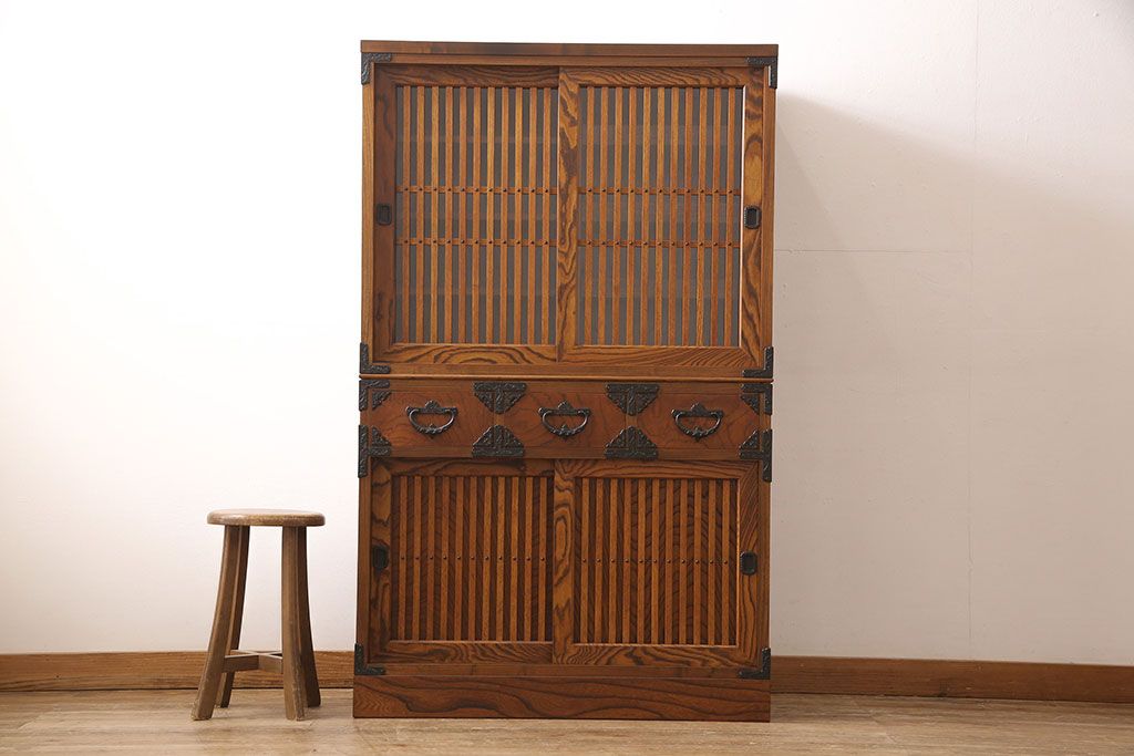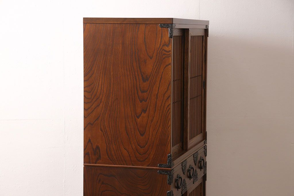 キャビネット・戸棚> 食器棚・カップボード > 中古 岩谷堂箪笥 No.96 雪国 和モダンの空間づくりにもおすすめ!格子戸が魅力的な食器棚(茶箪笥、茶棚、収納棚)(定価約62万円)(R-053145)
