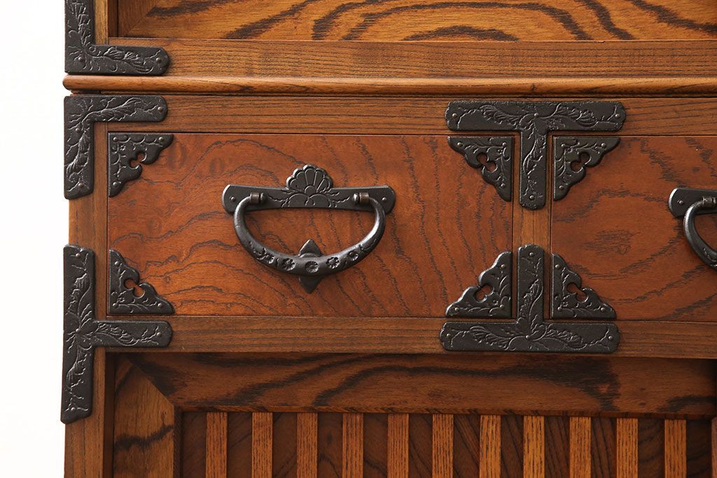 和箪笥> 茶箪笥・茶棚 > 中古 岩谷堂箪笥 No.96 雪国 和モダンの空間づくりにもおすすめ!格子戸が魅力的な食器棚(茶箪笥、茶棚、収納棚)(定価約62万円)(R-053145)