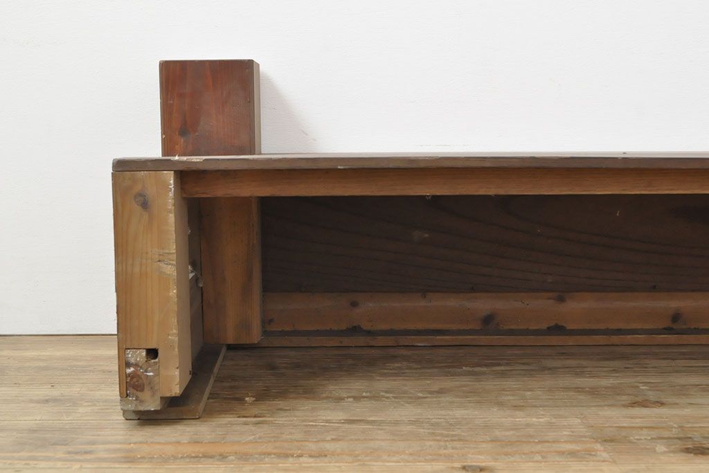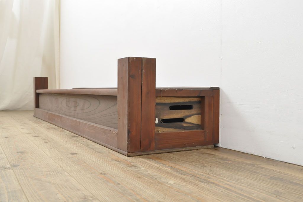 和製アンティーク ケヤキ材・ヒノキ材・側面には黒柿材使用 木の味わいを存分に楽しめる横長置き床(ローボード、飾り棚、置床)(R-053012)