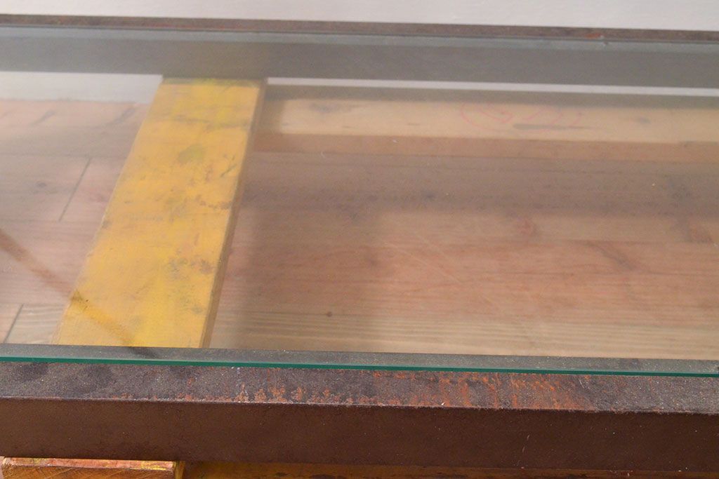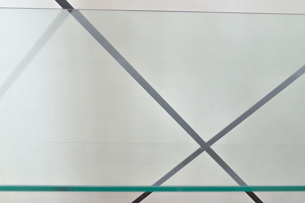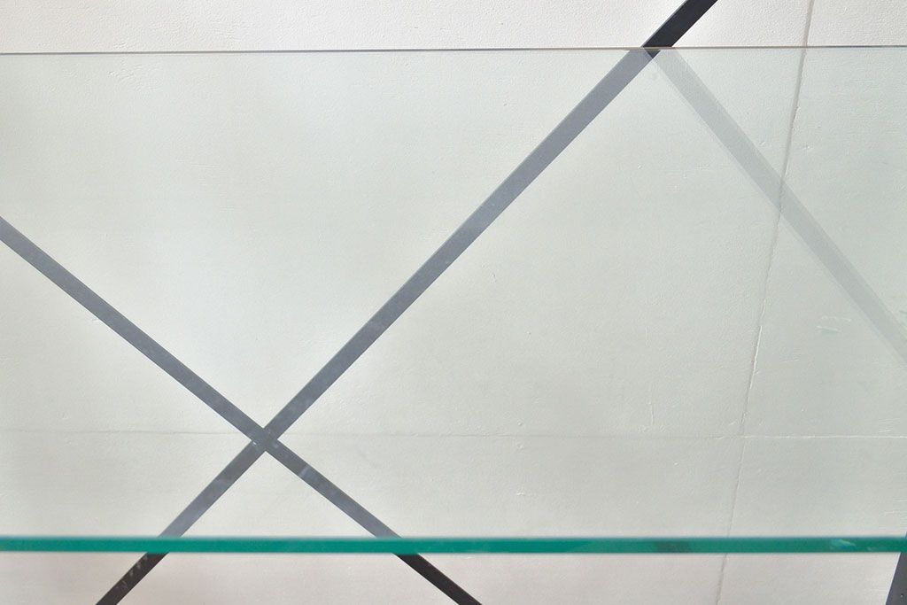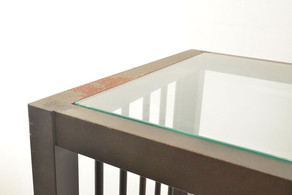 ガラス棚と鉄製フレームの組み合わせが、