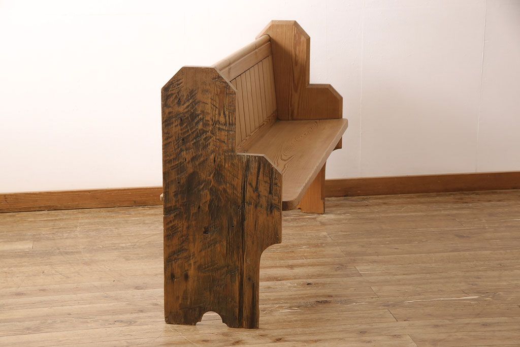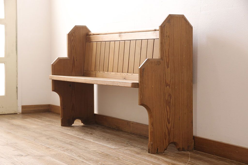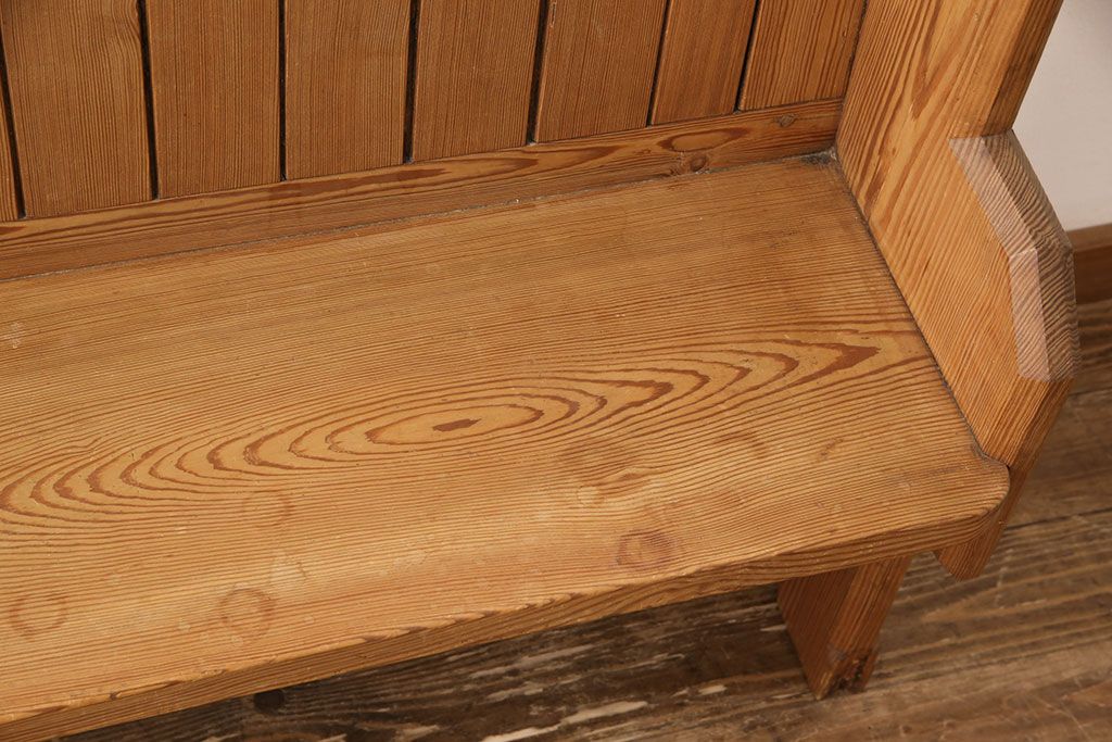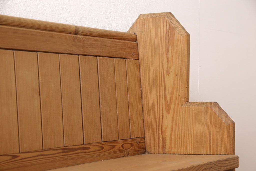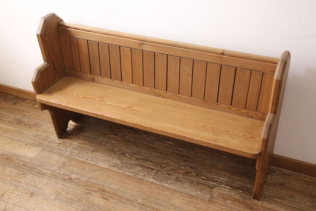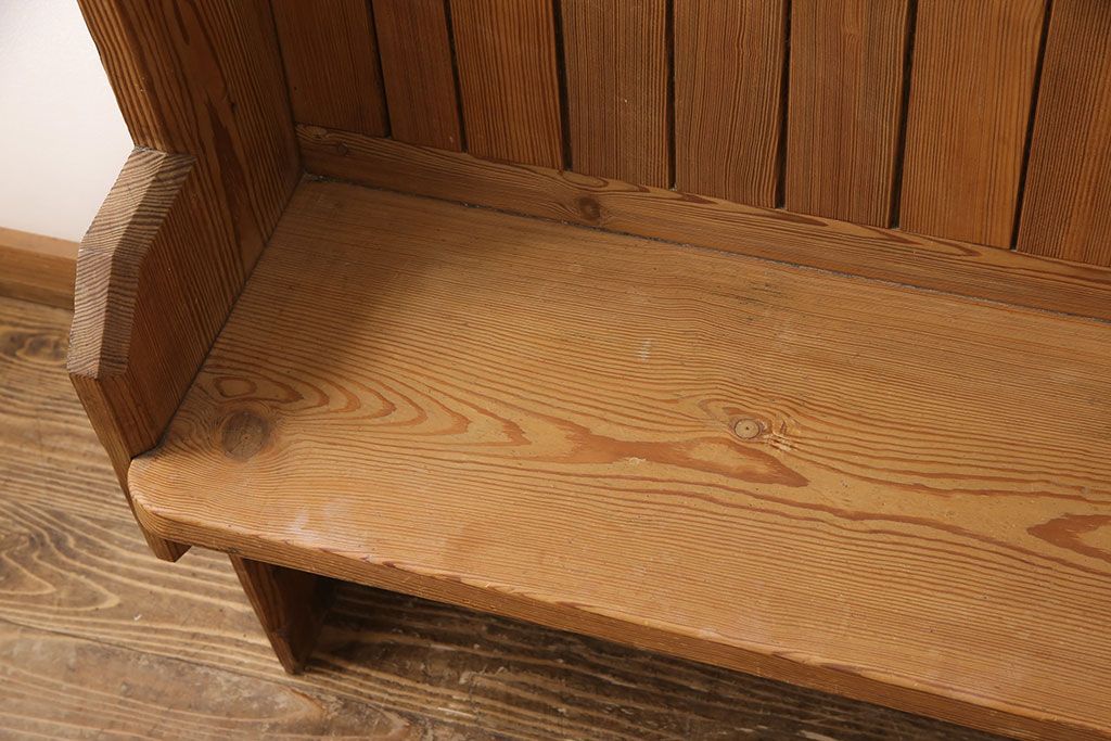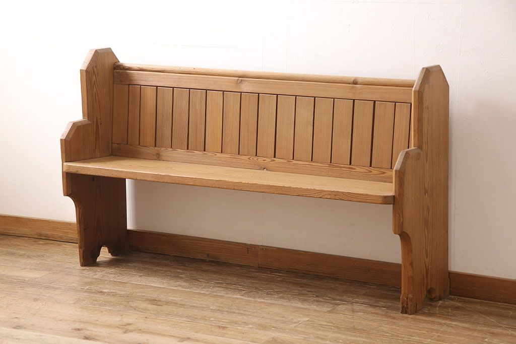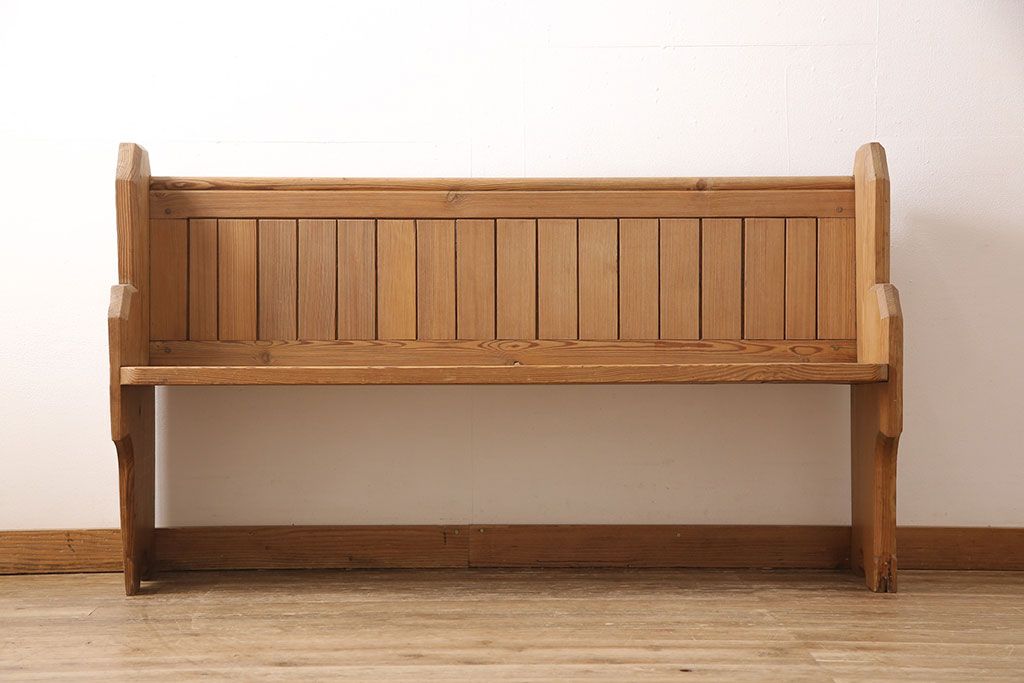 椅子・ベンチ> ベンチ > イギリスビンテージ パイン材 ナチュラルスタイルにおすすめのチャーチベンチ(長椅子、木製ベンチ、ベンチ、ヴィンテージ)(R-053153)