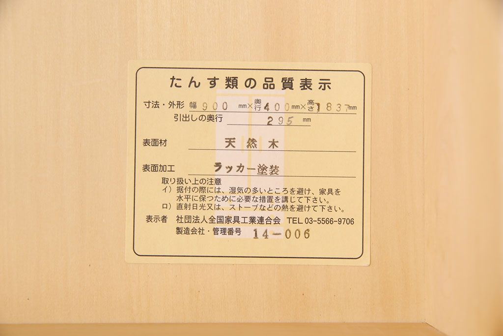 幅:900㎜ 奥行:400㎜ 高さ:1,830㎜