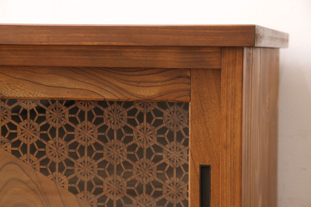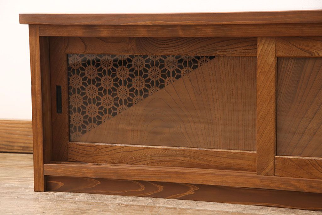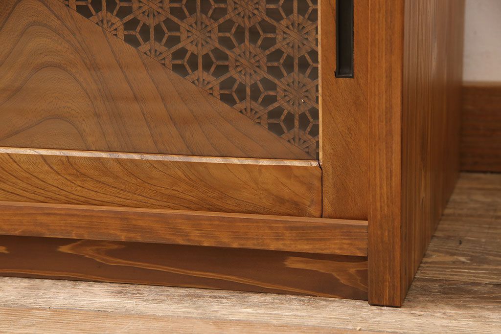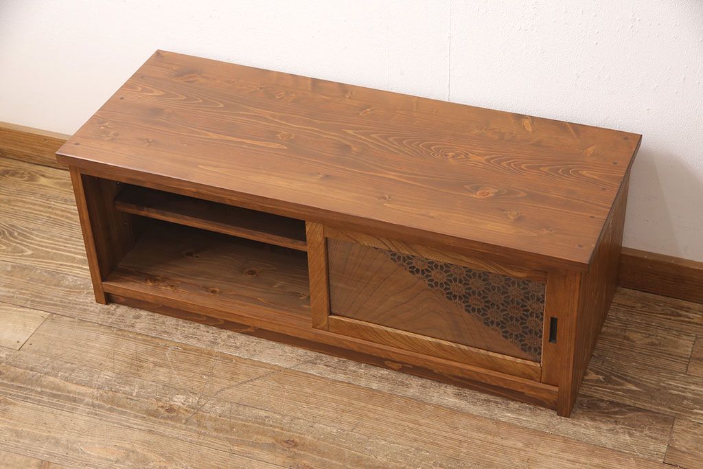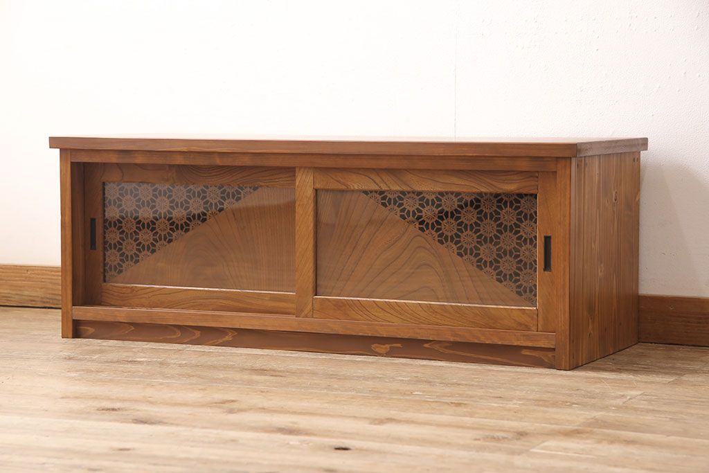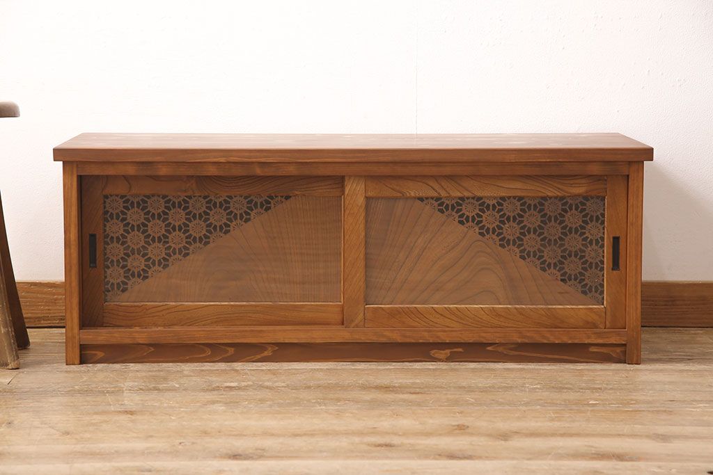 ラフジュ工房オリジナル 古建具リメイク 組子風デザインの扉が空間のアクセントにもなるテレビボード(テレビ台、ローボード、収納棚、戸棚)(R-052992)です。