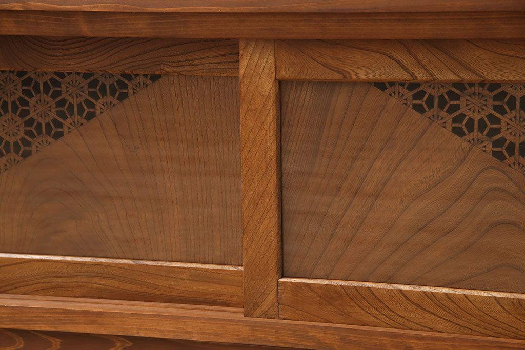 扉の板部分のデザインは組子風にくり抜いて表現しており、