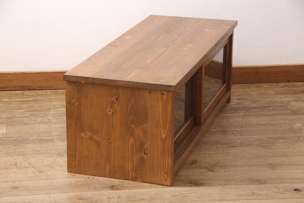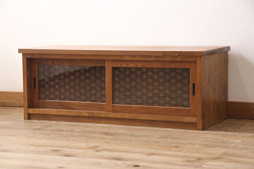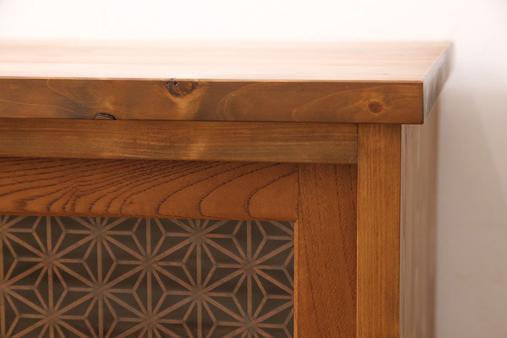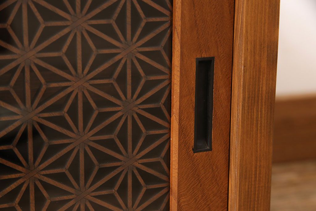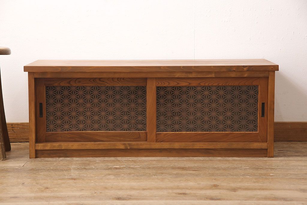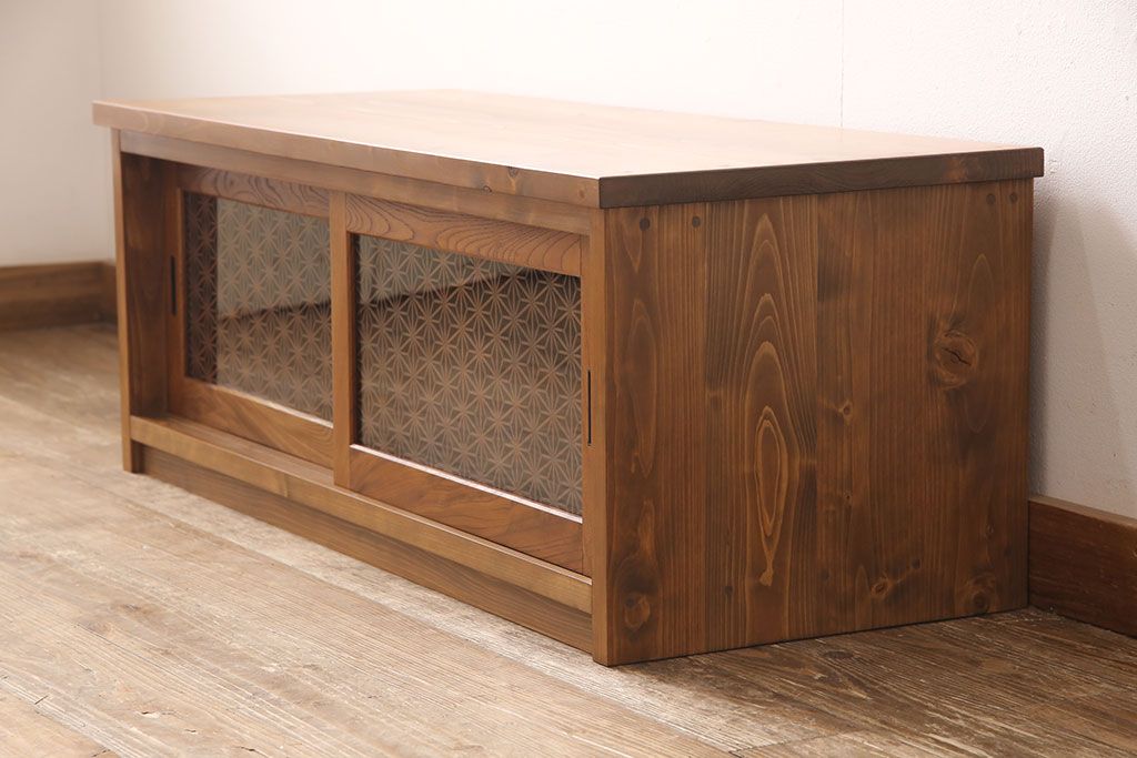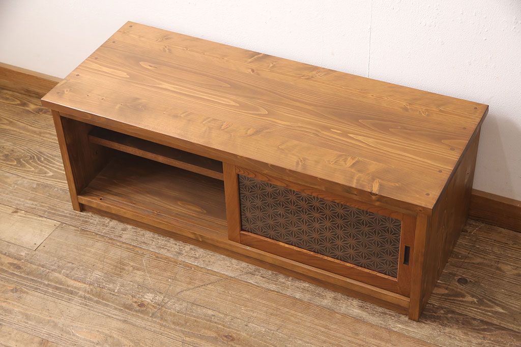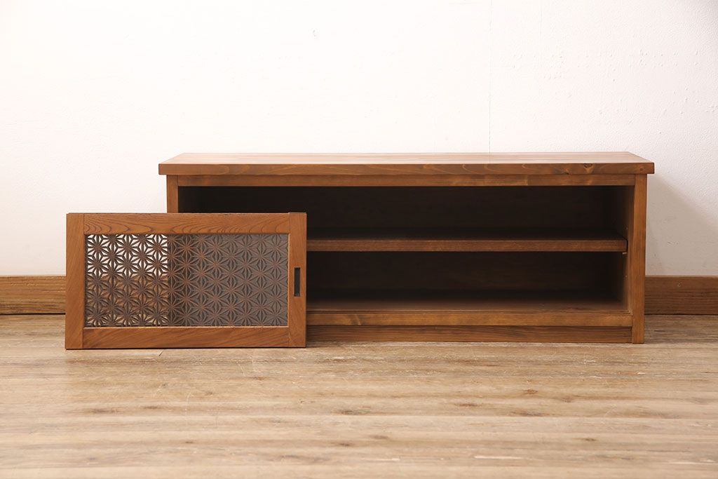 ラフジュ工房オリジナル 古建具リメイク 組子風デザインの扉が空間のアクセントにもなるテレビボード(テレビ台、ローボード、収納棚、戸棚)(R-052993)です。