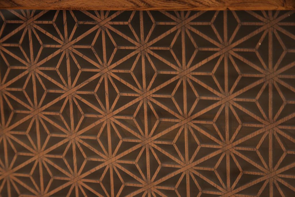 扉の板部分のデザインは組子風にくり抜いて表現しており、