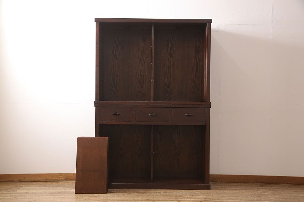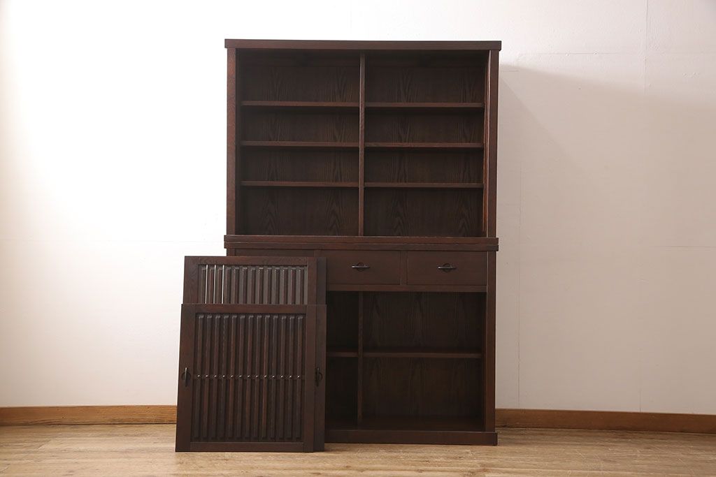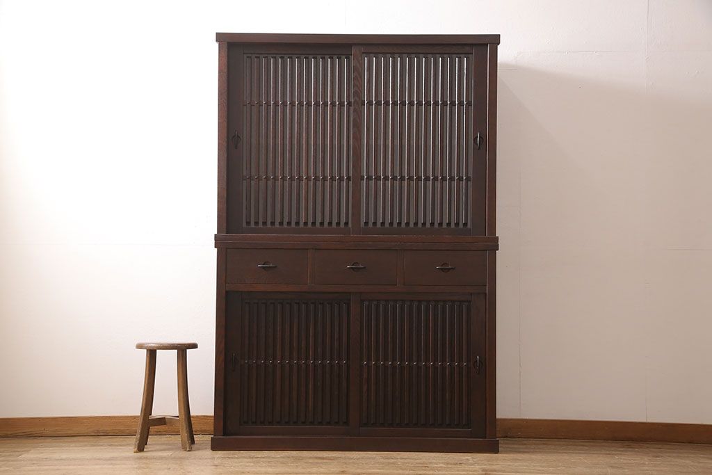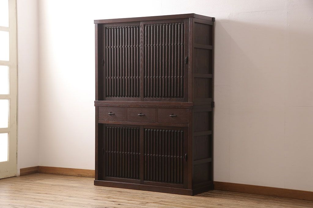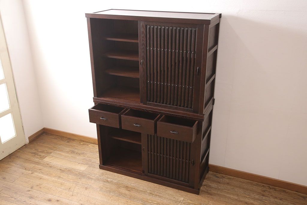 中古 美品 北海道旭川家具 和光 落ち着いた色合いと格子がモダンな雰囲気を醸し出す水屋箪笥(水屋たんす、食器棚、収納棚、キャビネット)(定価約41万円)(R-053283)です。