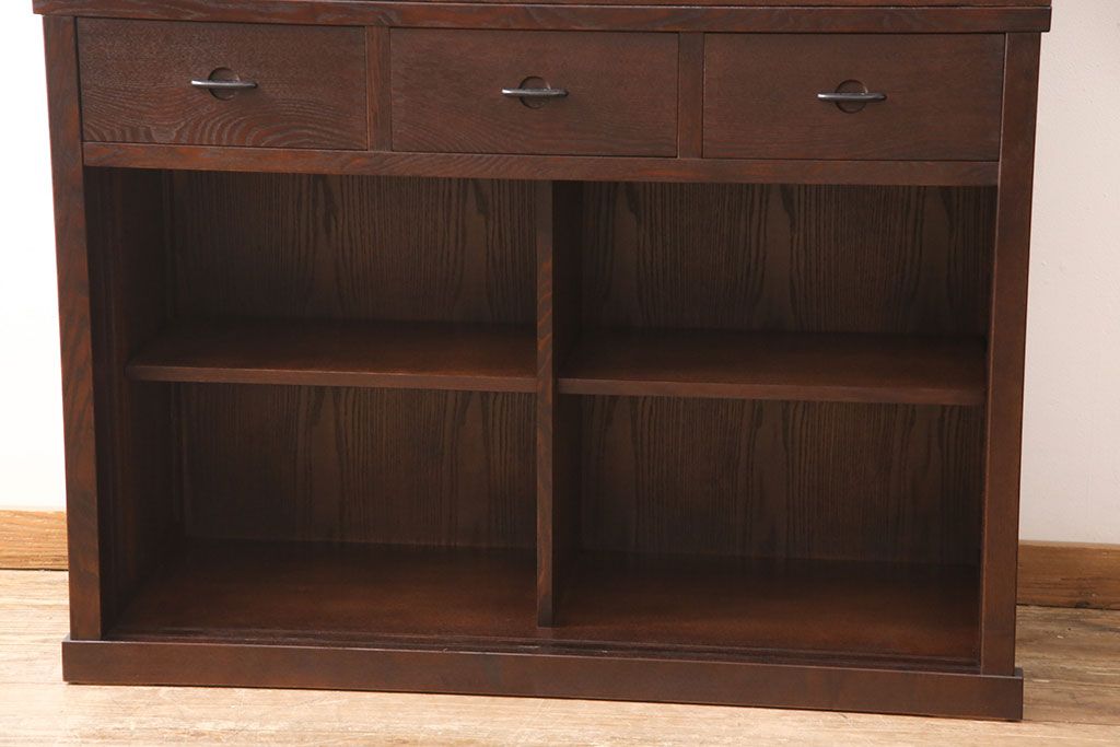 キャビネット・戸棚> 食器棚・カップボード > 中古 美品 北海道旭川家具 和光 落ち着いた色合いと格子がモダンな雰囲気を醸し出す水屋箪笥(水屋たんす、食器棚、収納棚、キャビネット)(定価約41万円)(R-053283)