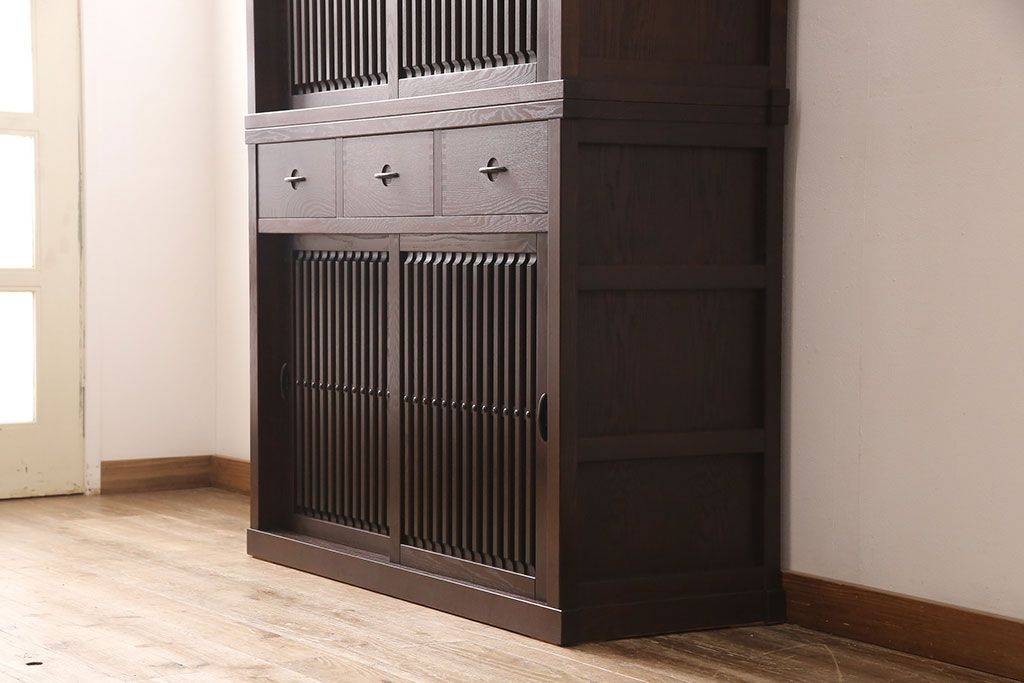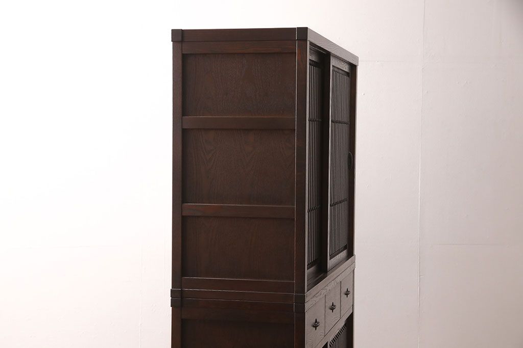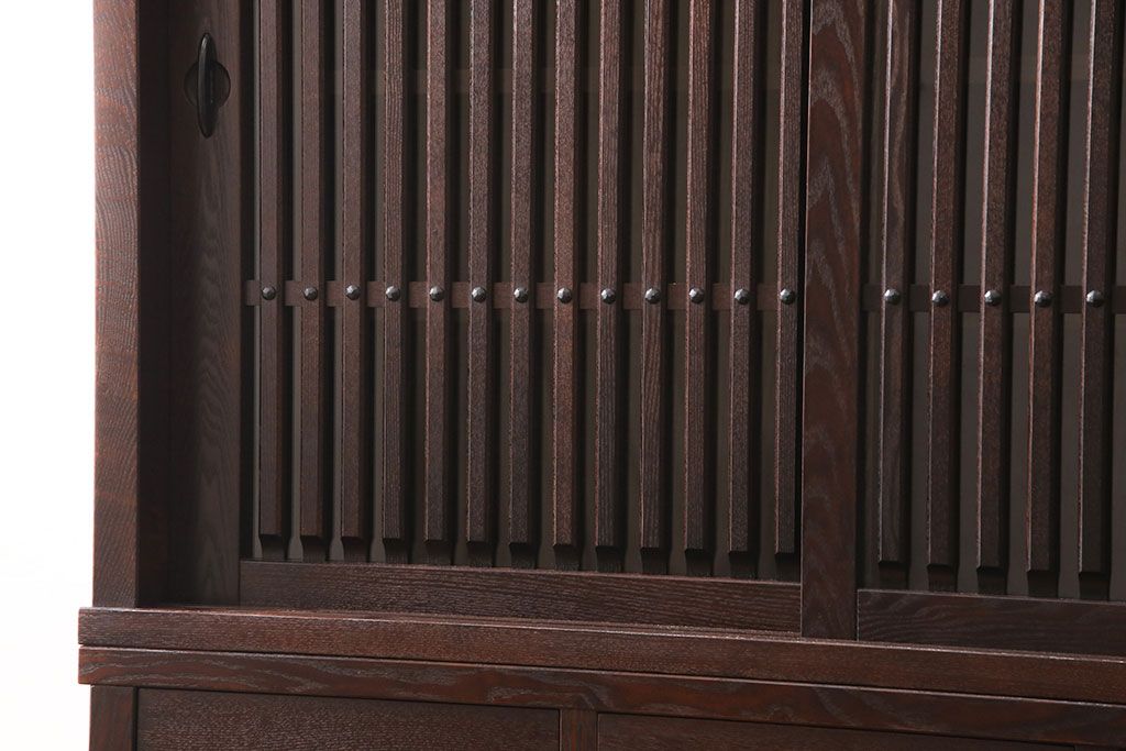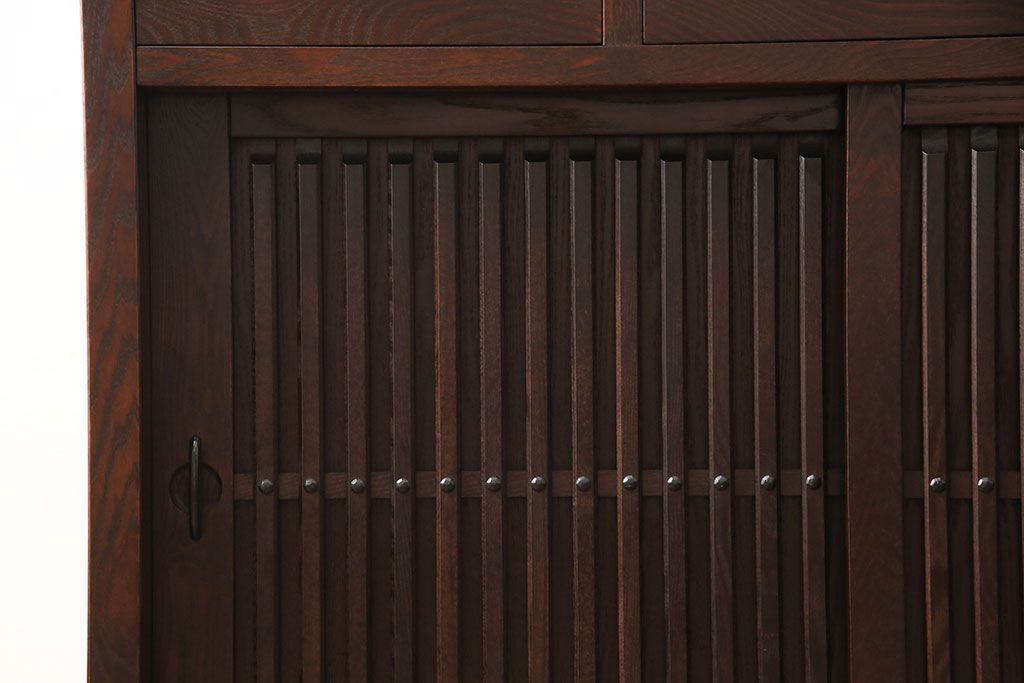 和箪笥> 水屋箪笥 > 中古 美品 北海道旭川家具 和光 落ち着いた色合いと格子がモダンな雰囲気を醸し出す水屋箪笥(水屋たんす、食器棚、収納棚、キャビネット)(定価約41万円)(R-053283)