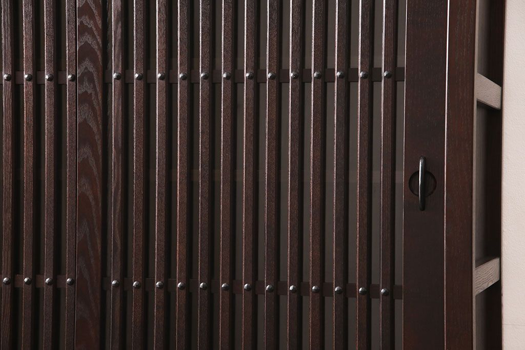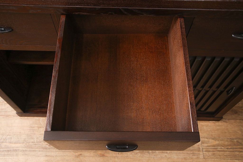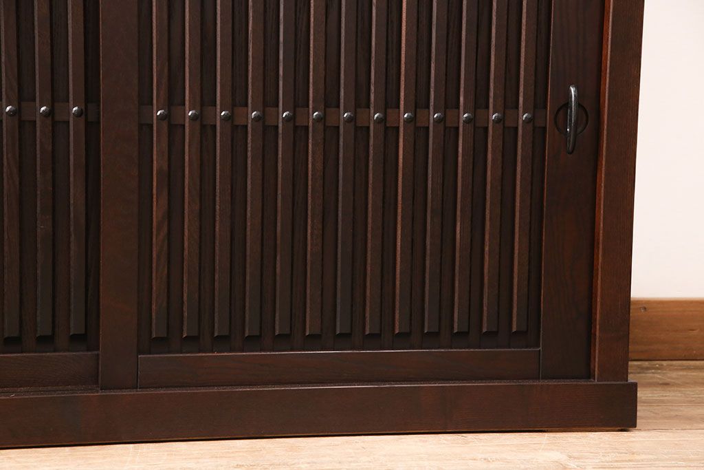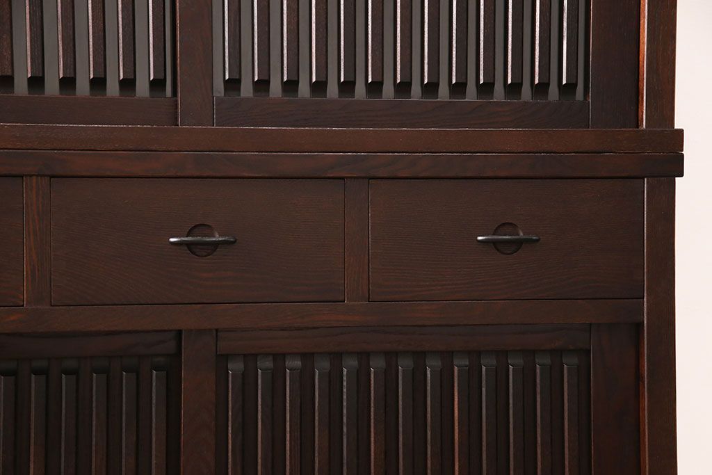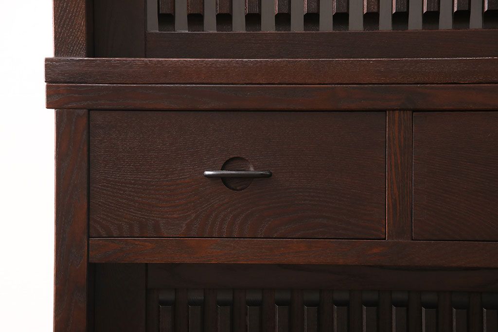 和箪笥> 水屋箪笥 > 中古 美品 北海道旭川家具 和光 落ち着いた色合いと格子がモダンな雰囲気を醸し出す水屋箪笥(水屋たんす、食器棚、収納棚、キャビネット)(定価約41万円)(R-053283)