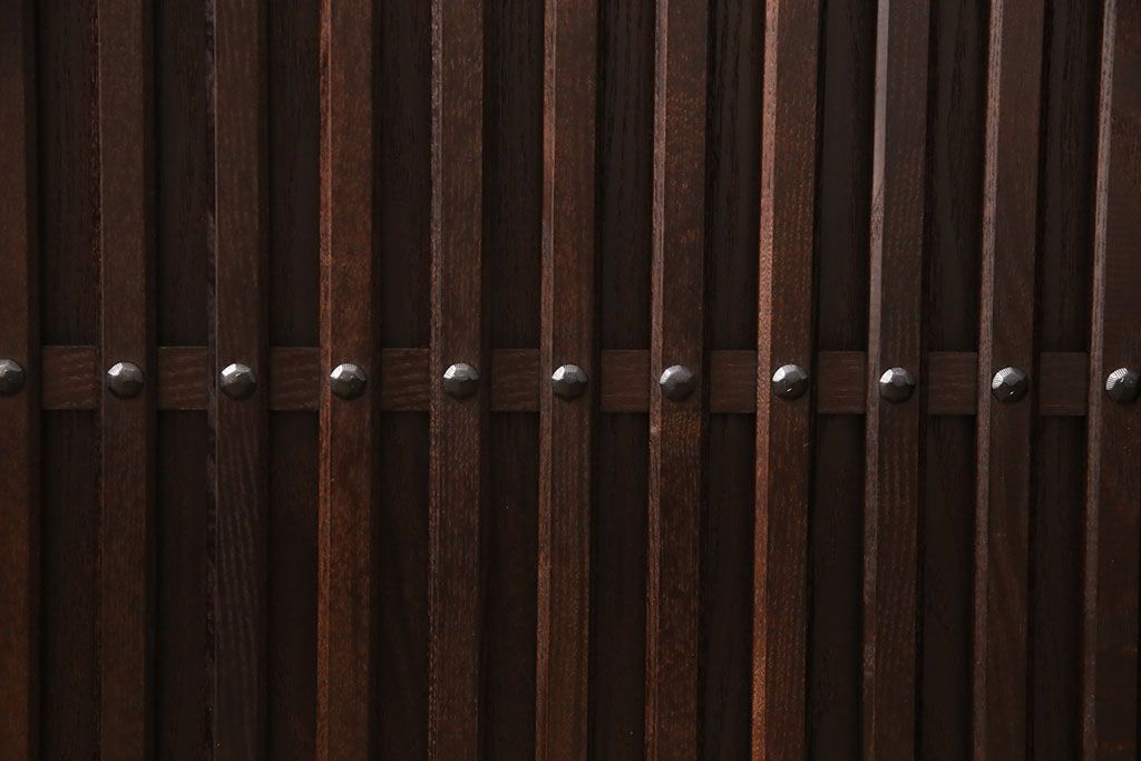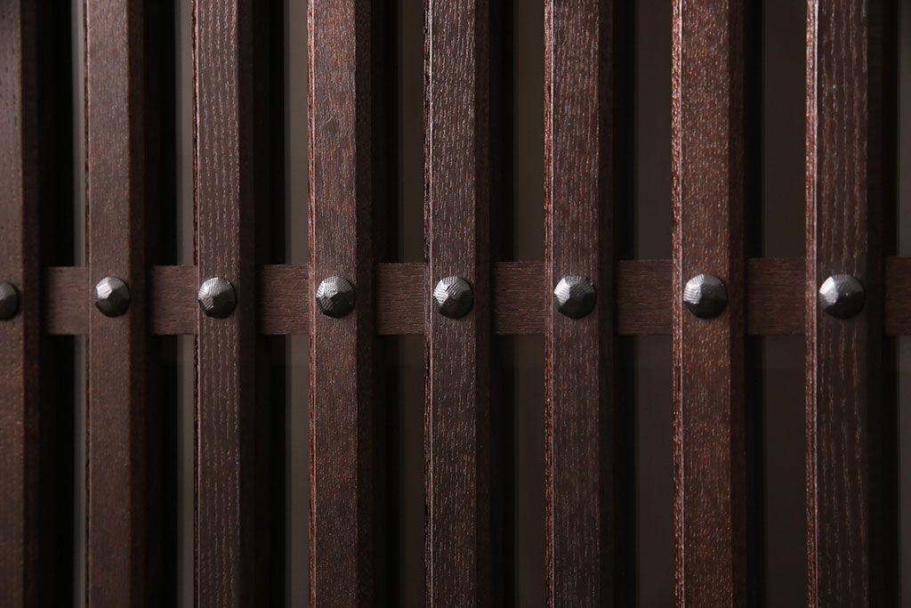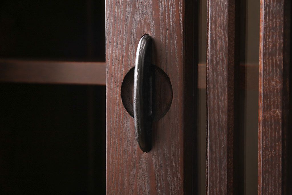 中古 美品 北海道旭川家具 和光 落ち着いた色合いと格子がモダンな雰囲気を醸し出す水屋箪笥(水屋たんす、食器棚、収納棚、キャビネット)(定価約41万円)(R-053283)