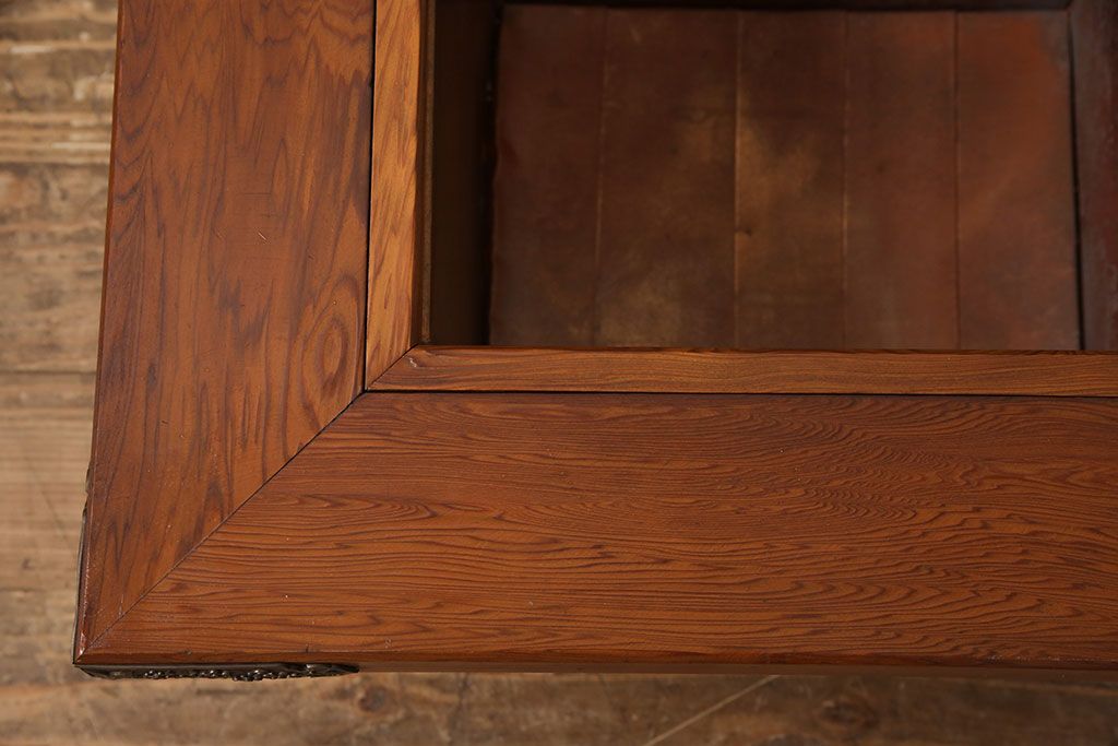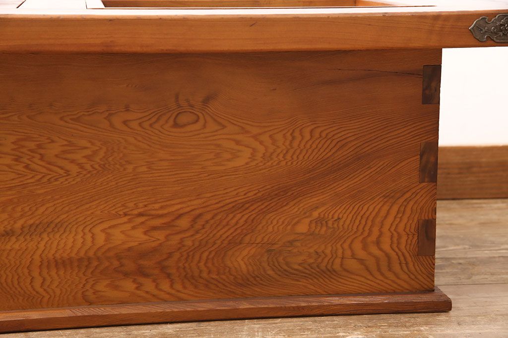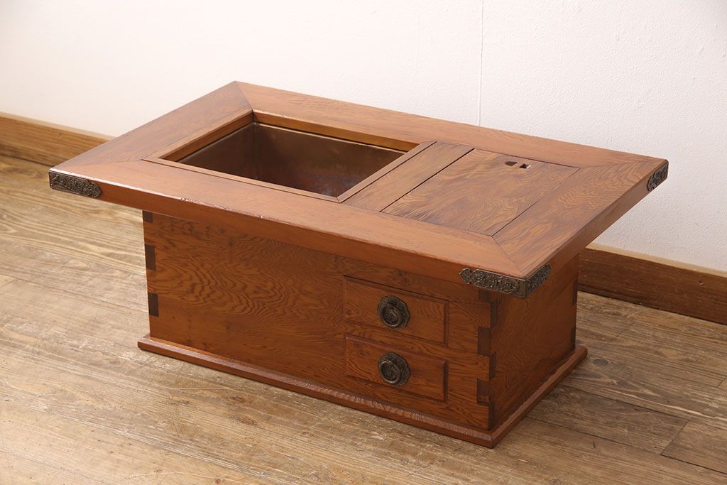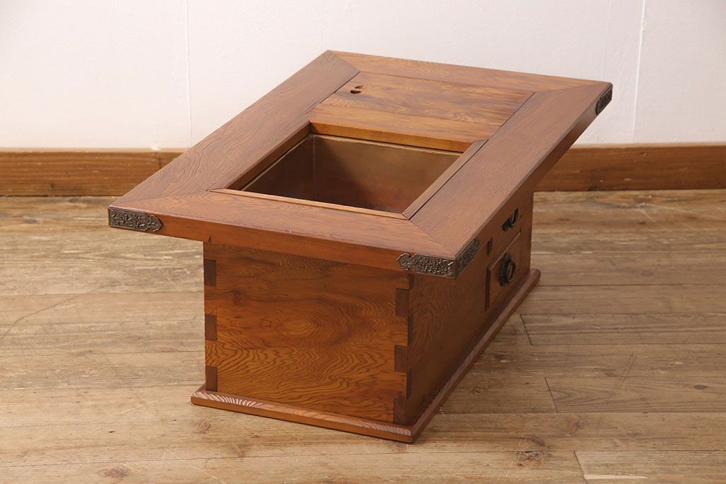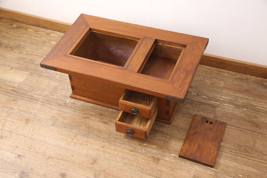 民芸家具 > 中古 屋久杉無垢材 細かい年輪と複雑な木目を楽しめる関西火鉢(長火鉢、囲炉裏、ローテーブル、木製火鉢)(定価約55万円)(R-053230)