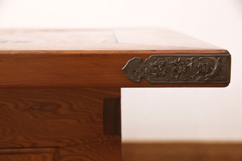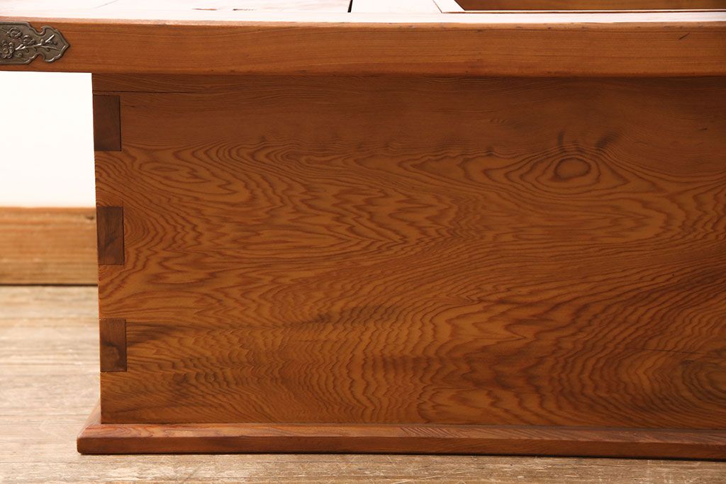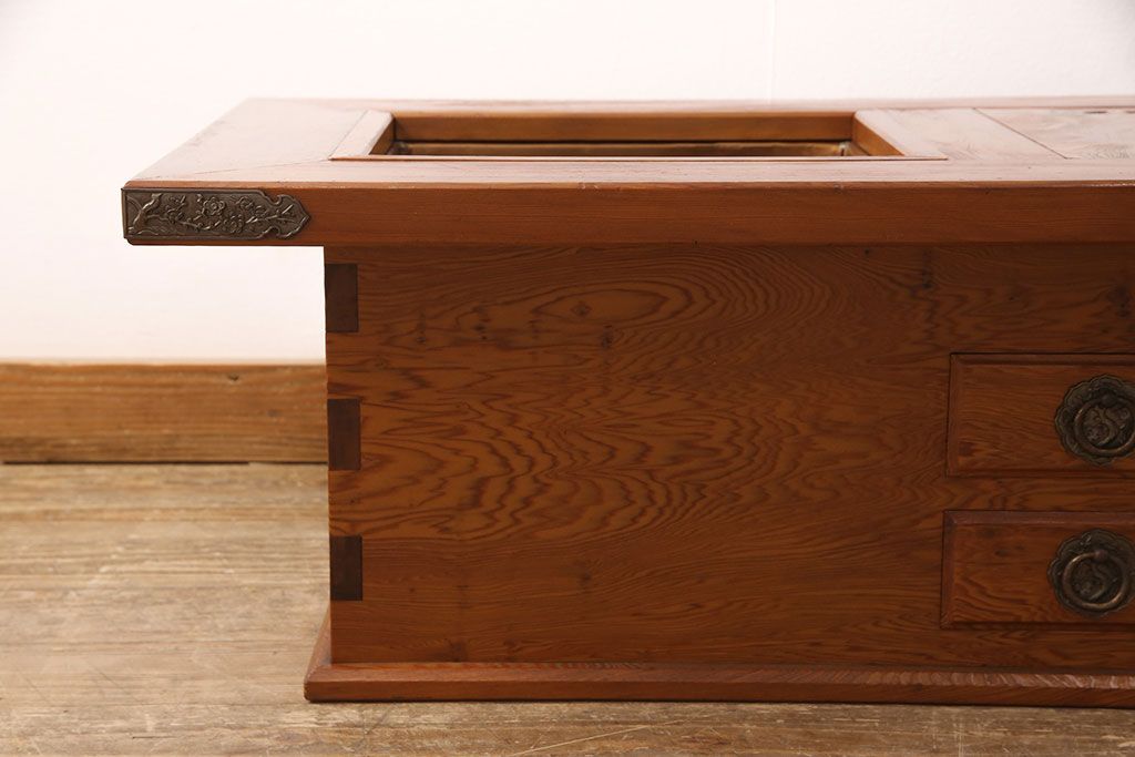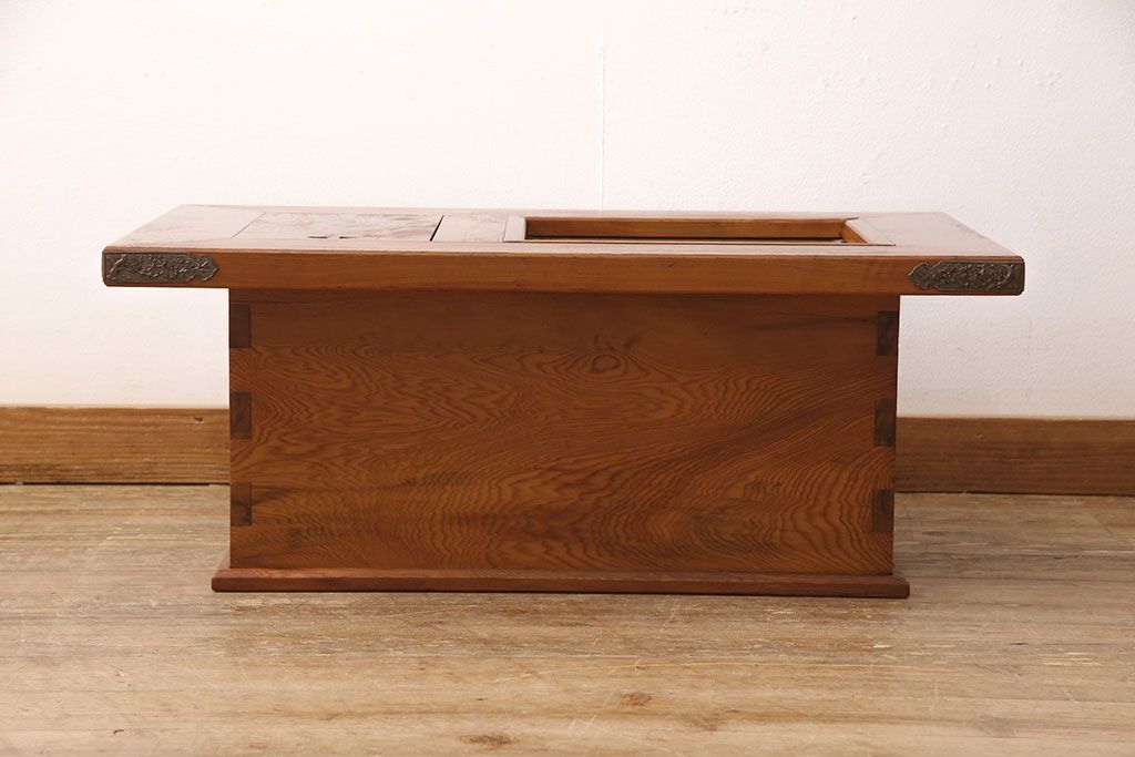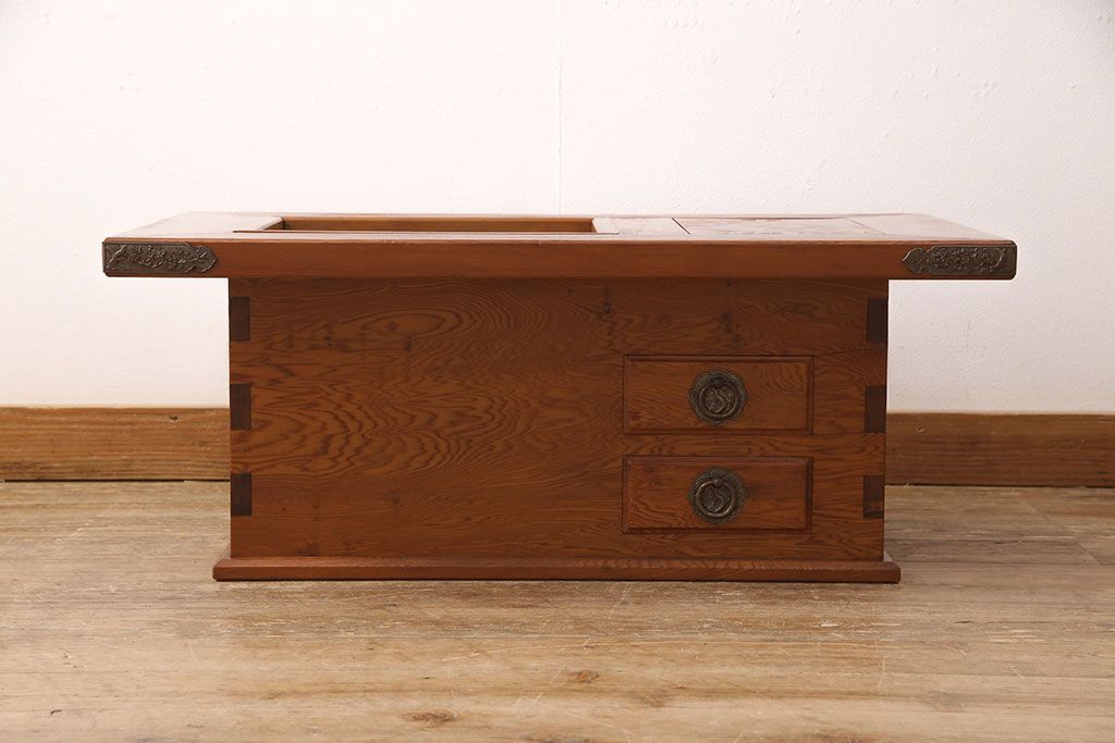 民芸家具 > 中古 屋久杉無垢材 細かい年輪と複雑な木目を楽しめる関西火鉢(長火鉢、囲炉裏、ローテーブル、木製火鉢)(定価約55万円)(R-053230)