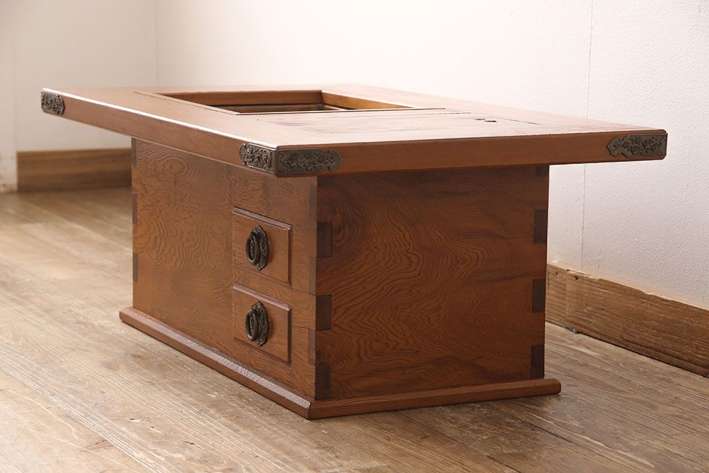 テーブル> 座卓 > 中古 屋久杉無垢材 細かい年輪と複雑な木目を楽しめる関西火鉢(長火鉢、囲炉裏、ローテーブル、木製火鉢)(定価約55万円)(R-053230)