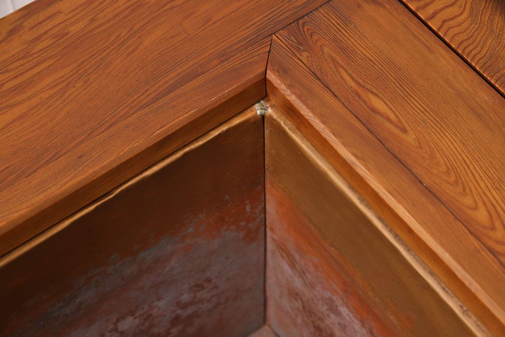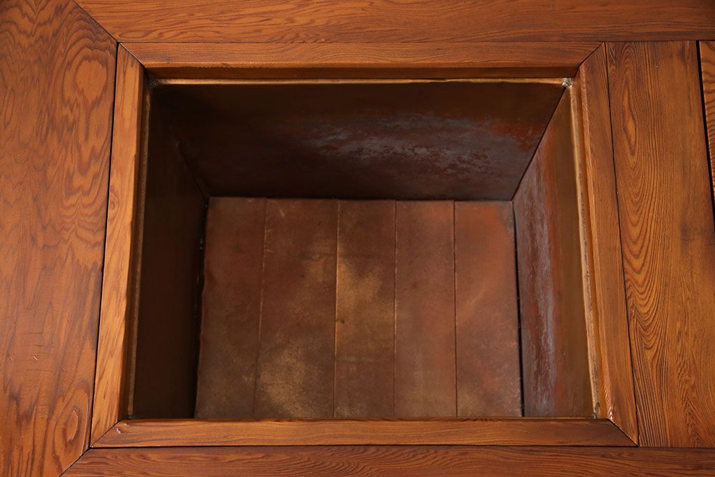 火鉢> 木製火鉢 > 中古 屋久杉無垢材 細かい年輪と複雑な木目を楽しめる関西火鉢(長火鉢、囲炉裏、ローテーブル、木製火鉢)(定価約55万円)(R-053230)