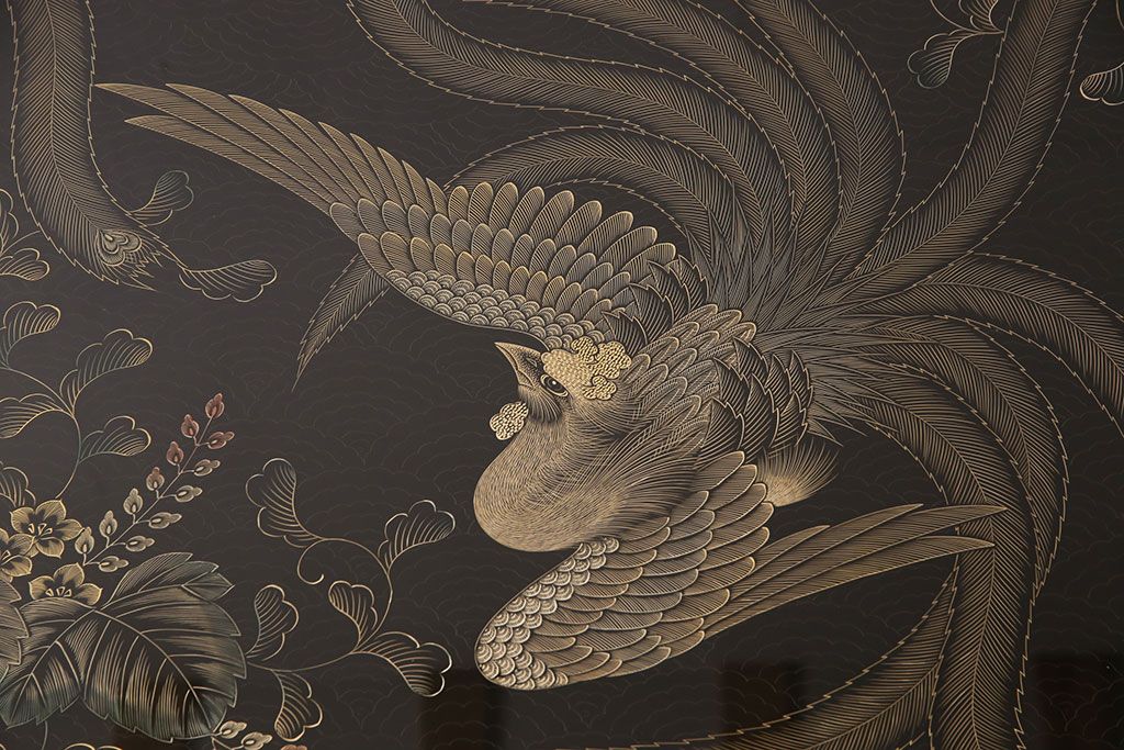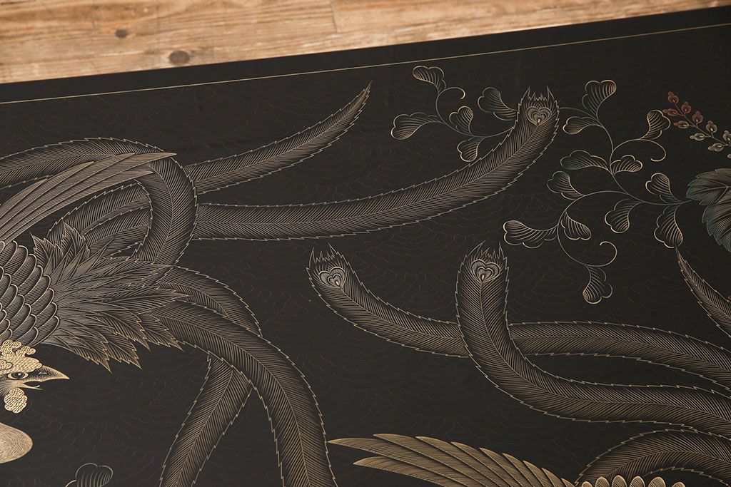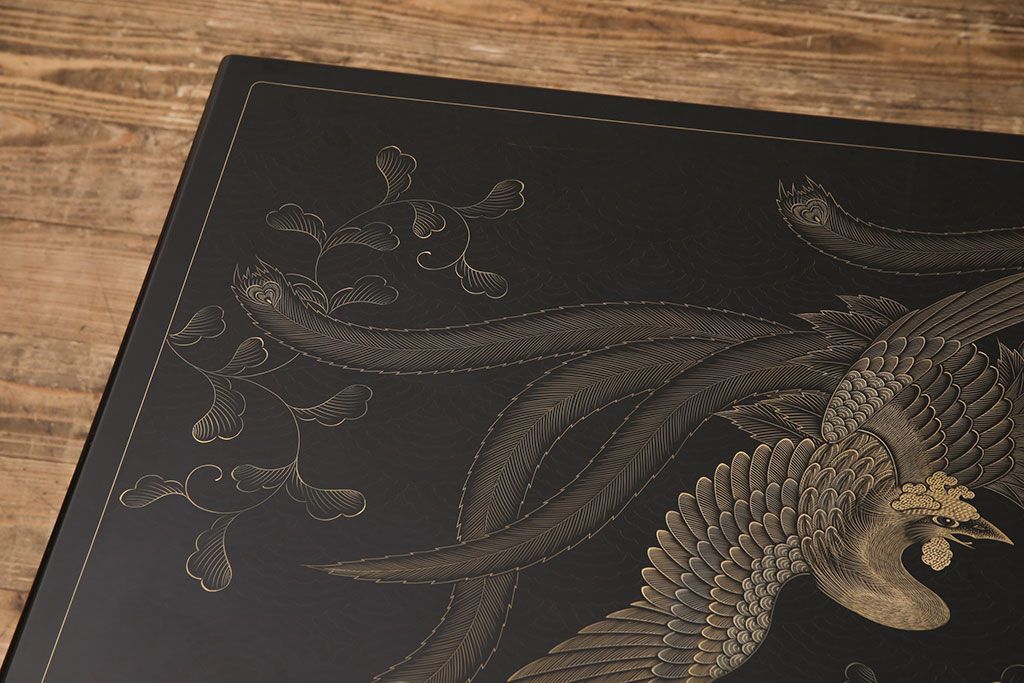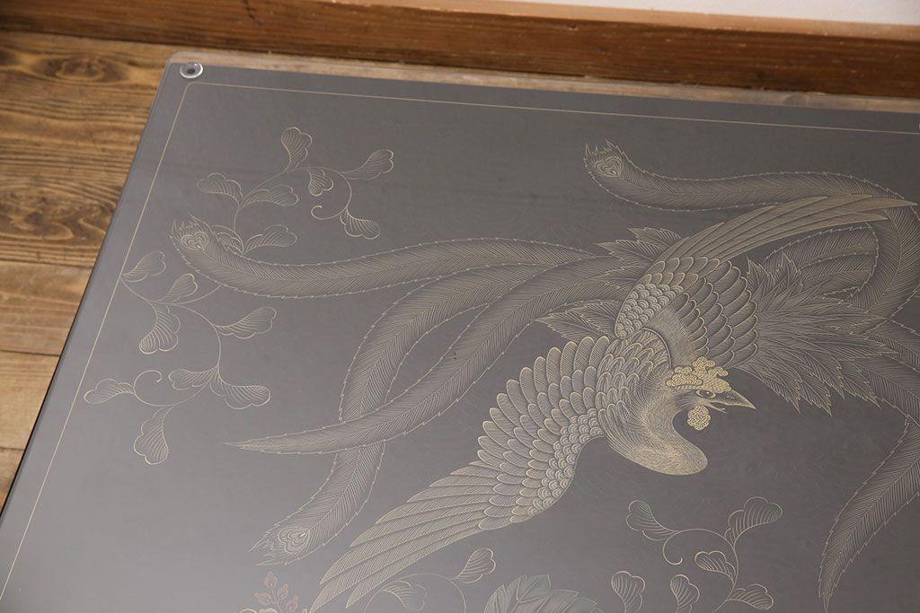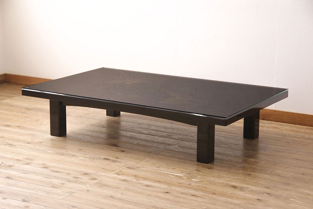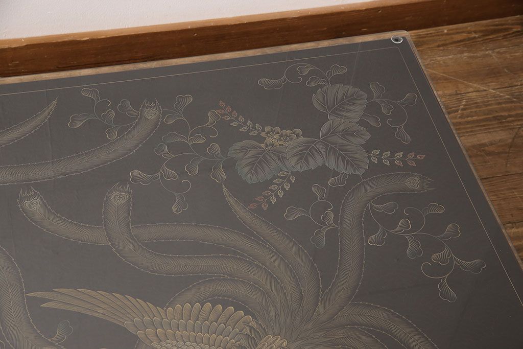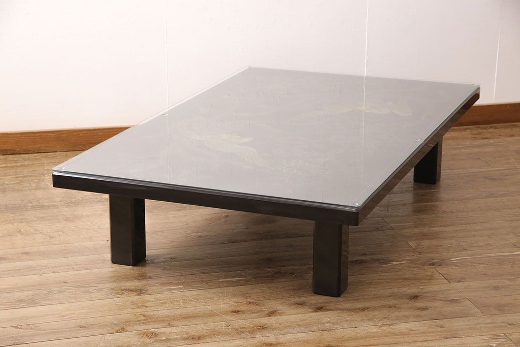 テーブル> 座卓 > 中古 輪島塗 ガラス天板付き 天板前面に描かれた鳳凰のデザインが美しい座卓(ローテーブル、センターテーブル)(R-053278)