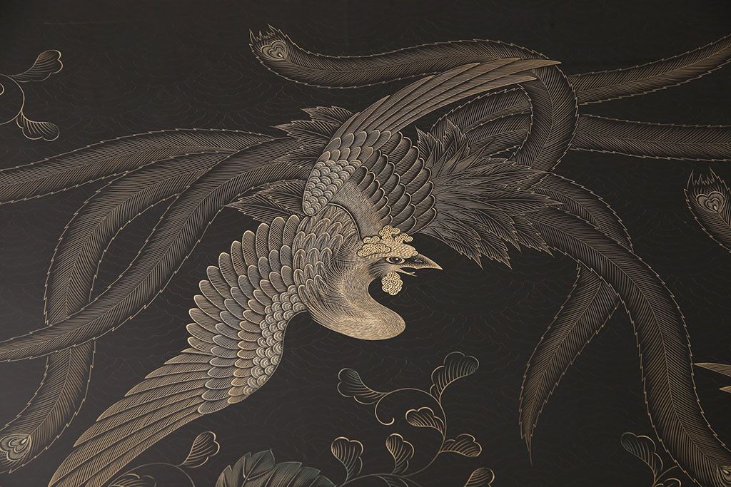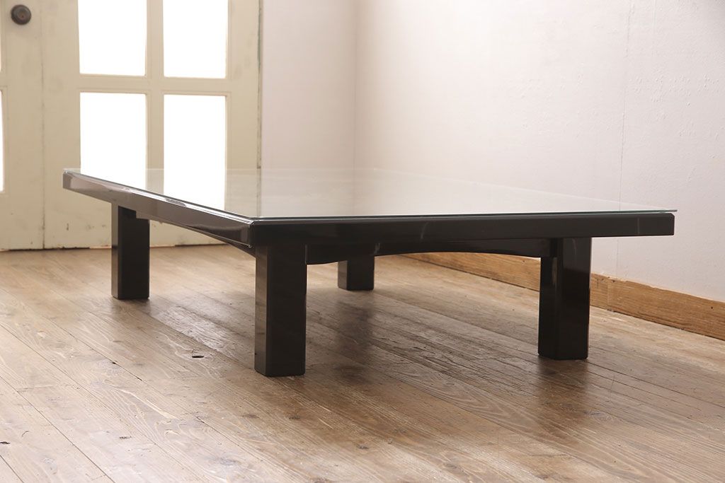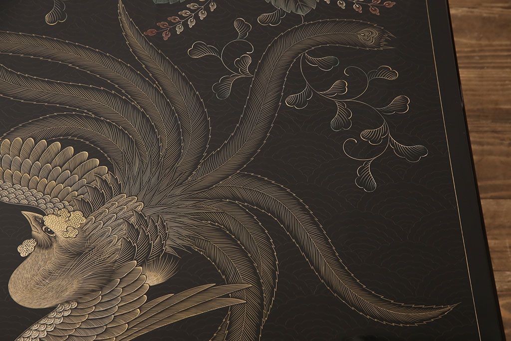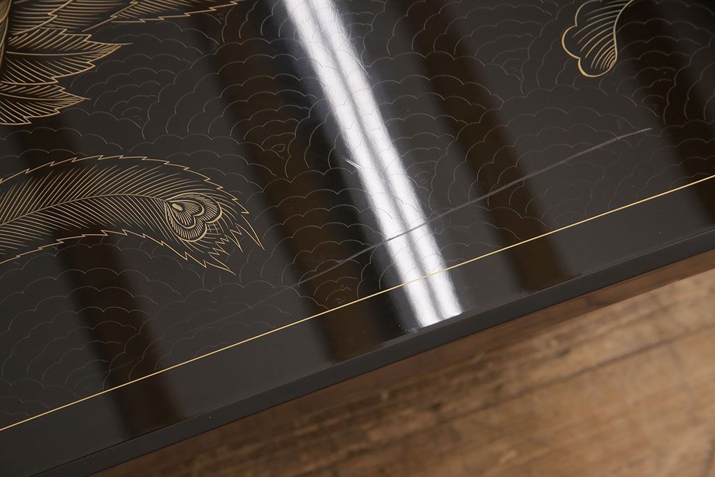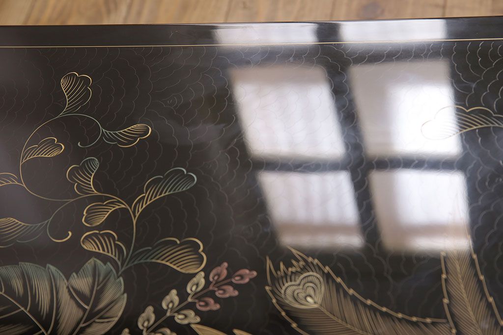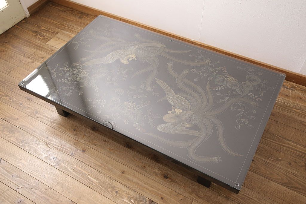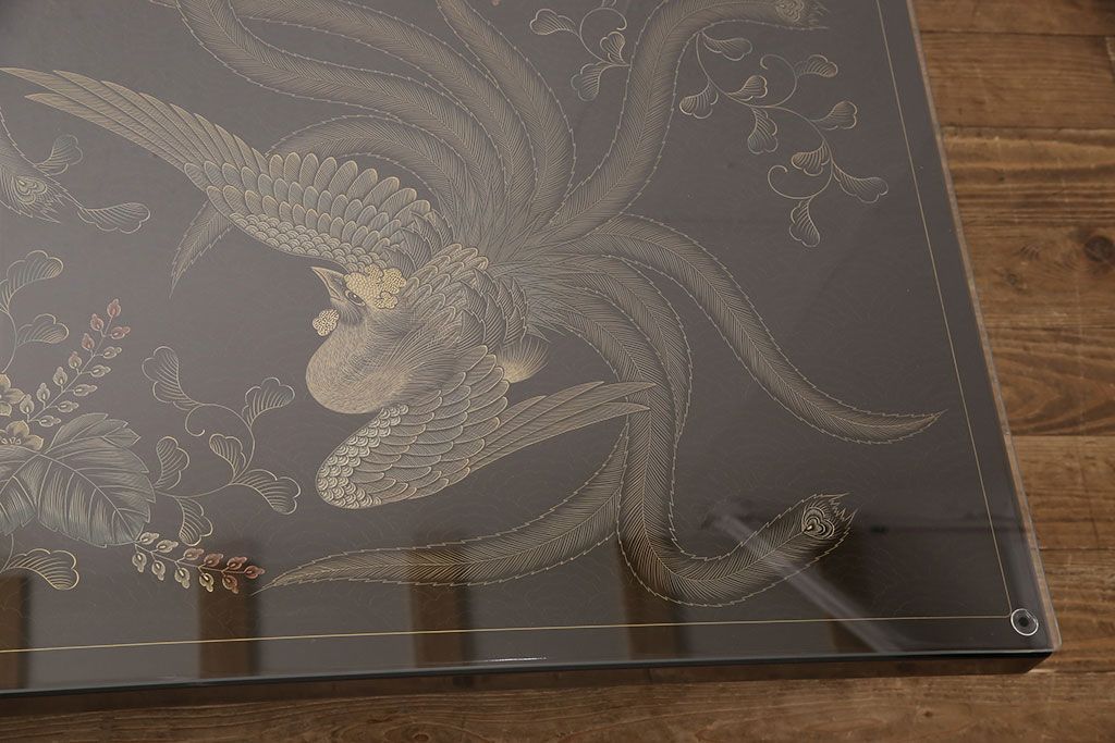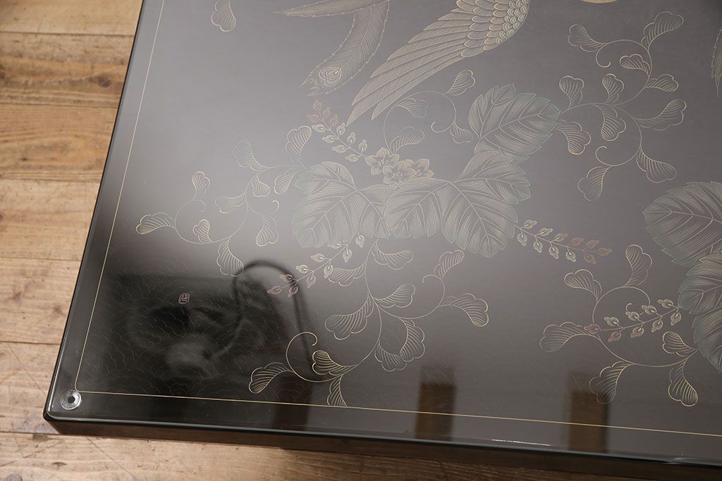テーブル> センターテーブル・ローテーブル > 中古 輪島塗 ガラス天板付き 天板前面に描かれた鳳凰のデザインが美しい座卓(ローテーブル、センターテーブル)(R-053278)