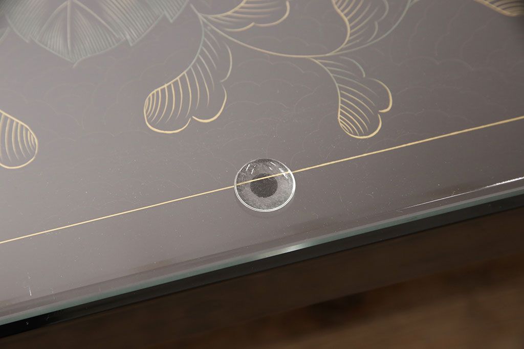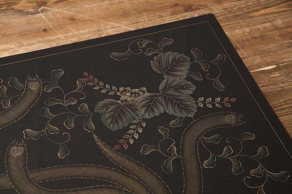民芸家具 > 中古 輪島塗 ガラス天板付き 天板前面に描かれた鳳凰のデザインが美しい座卓(ローテーブル、センターテーブル)(R-053278)