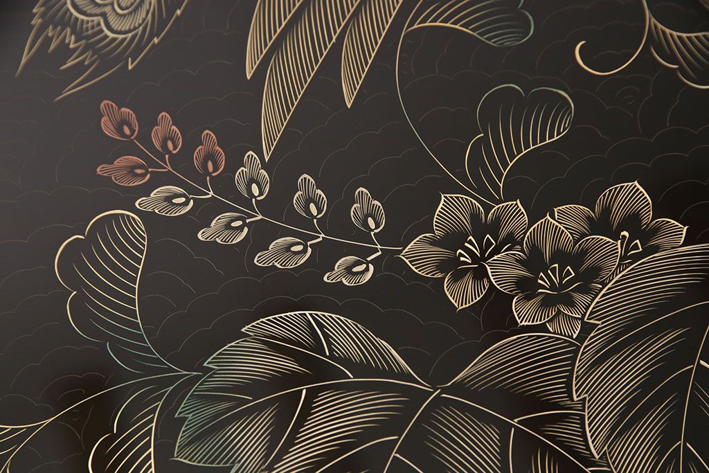 漆の黒と相まって高級感溢れる佇まいを実現しています。