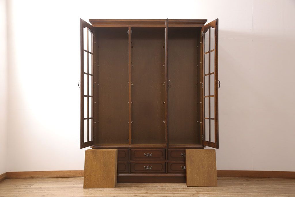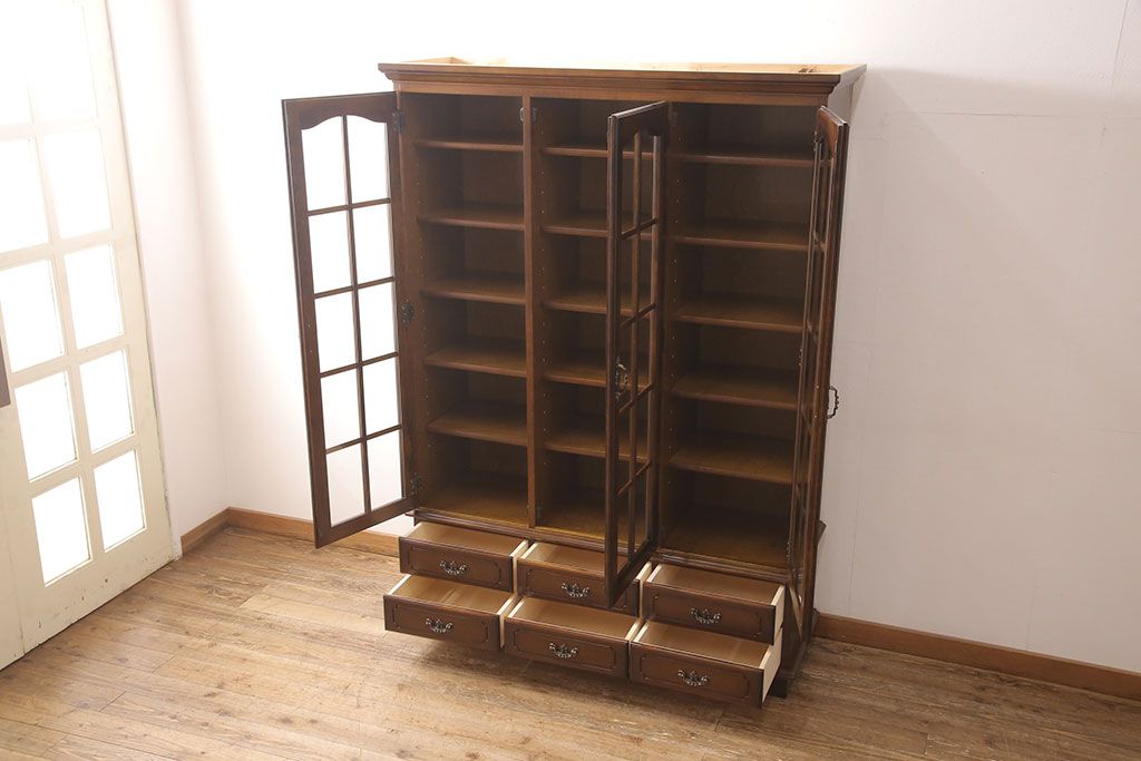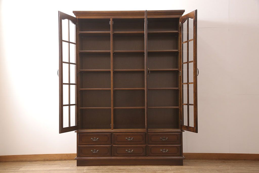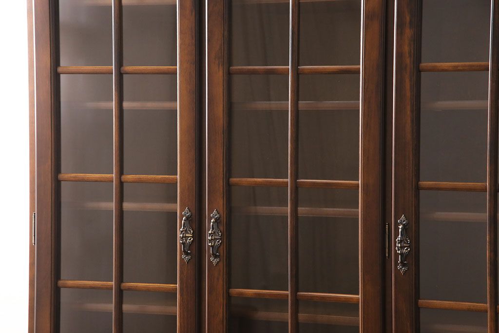 中古 美品 カリモク家具(karimoku) コロニアルシリーズ 大人の落ち着いた空間を演出する書棚(ブックケース、本棚、戸棚、キャビネット、収納棚)(定価約30万円)(R-053282)