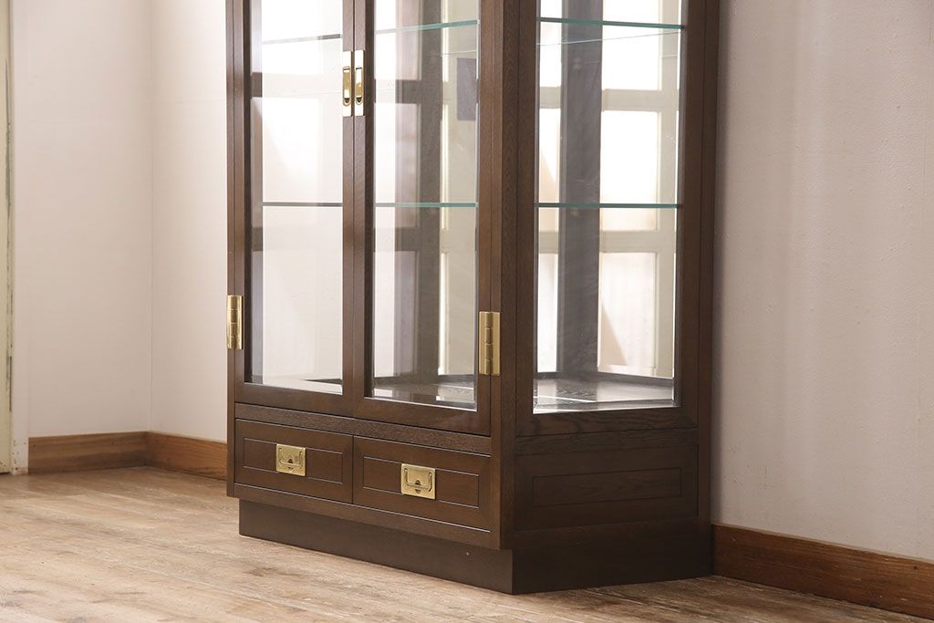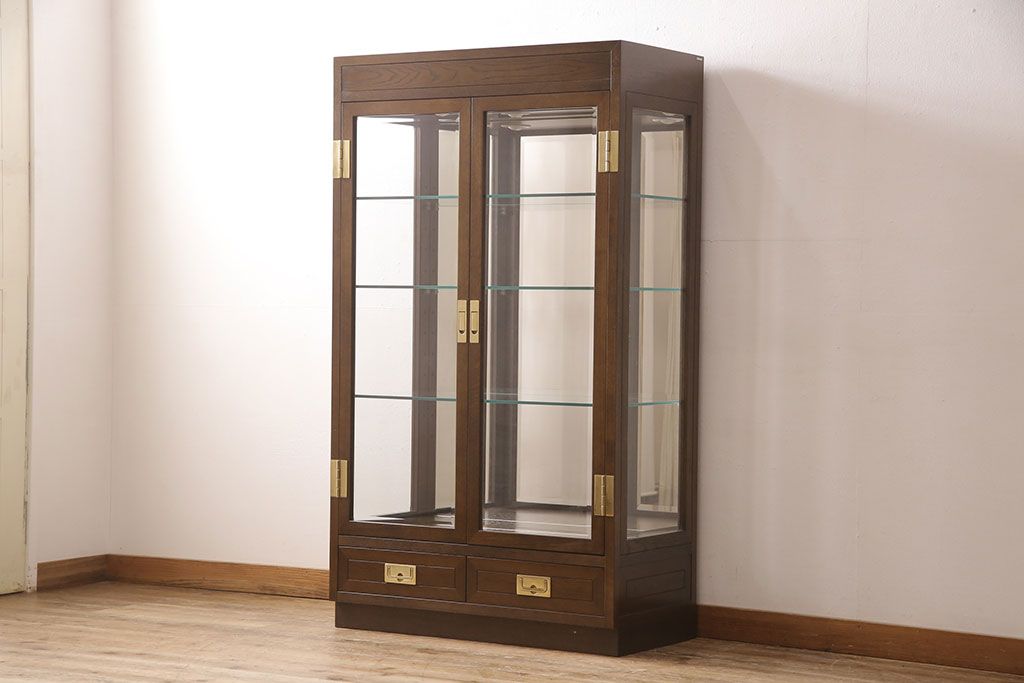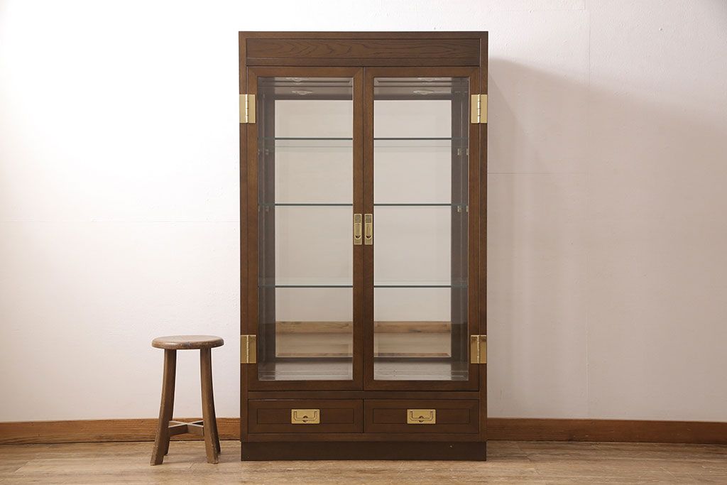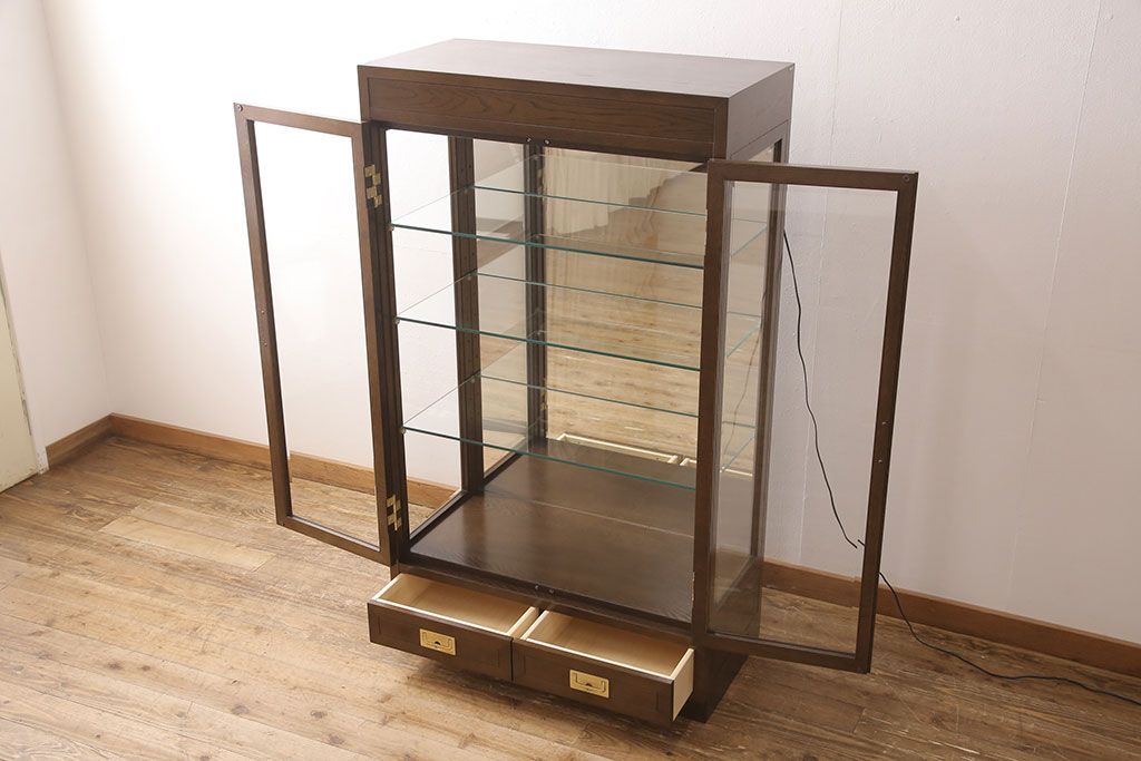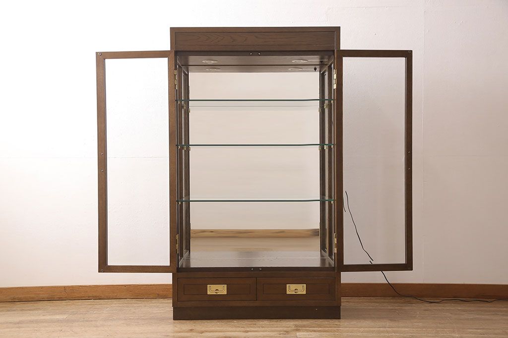 中古 美品 カリモク家具(karimoku) domani(ドマーニ) Morganton(モーガントン) ヒッコリーブラウン色で落ち着いた空間を演出してくれるキュリオケース(ガラスケース、ショーケース、飾り棚、店舗什器、陳列棚)(定価約41万円)(R-053248)