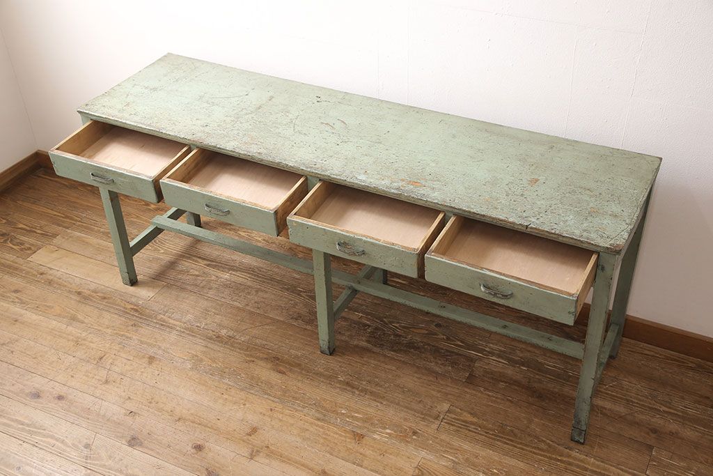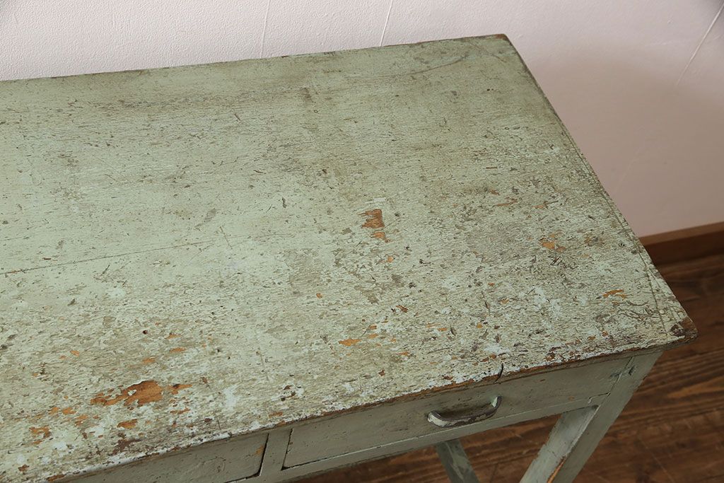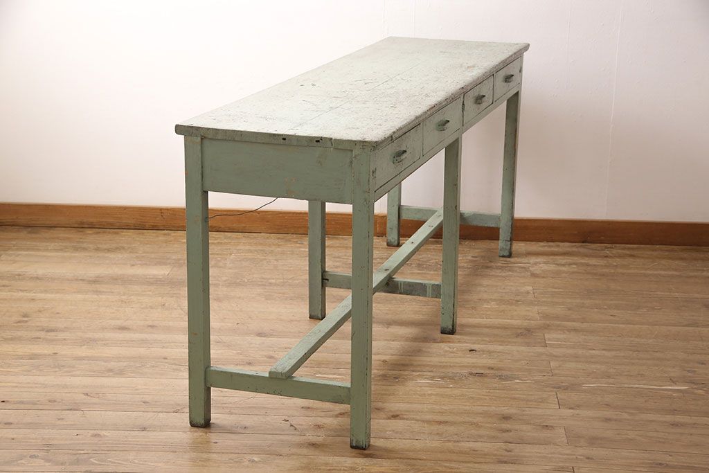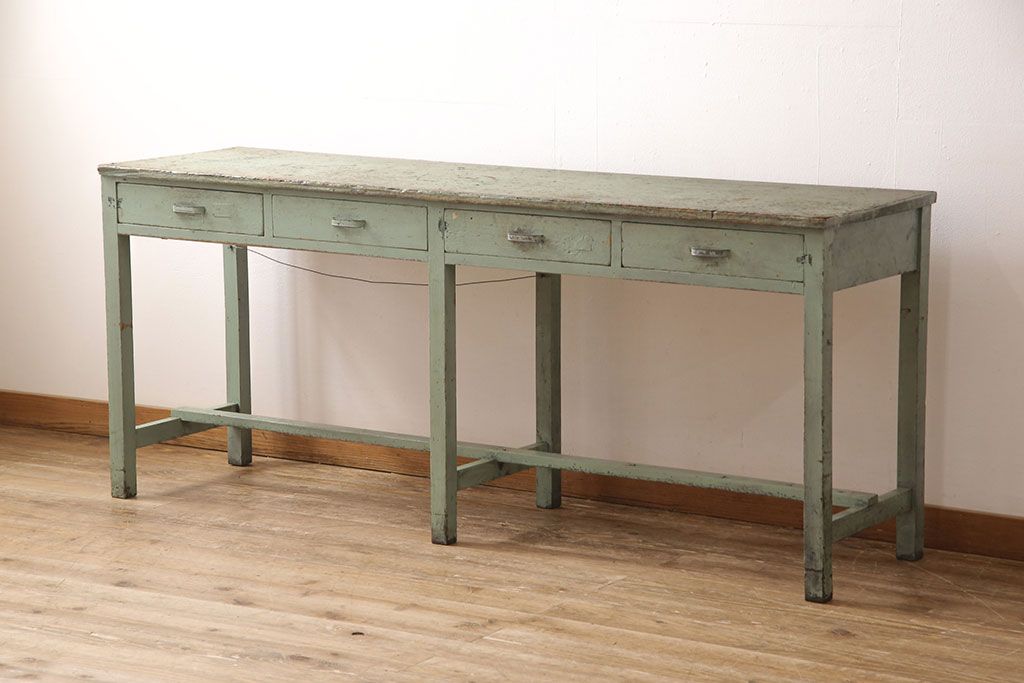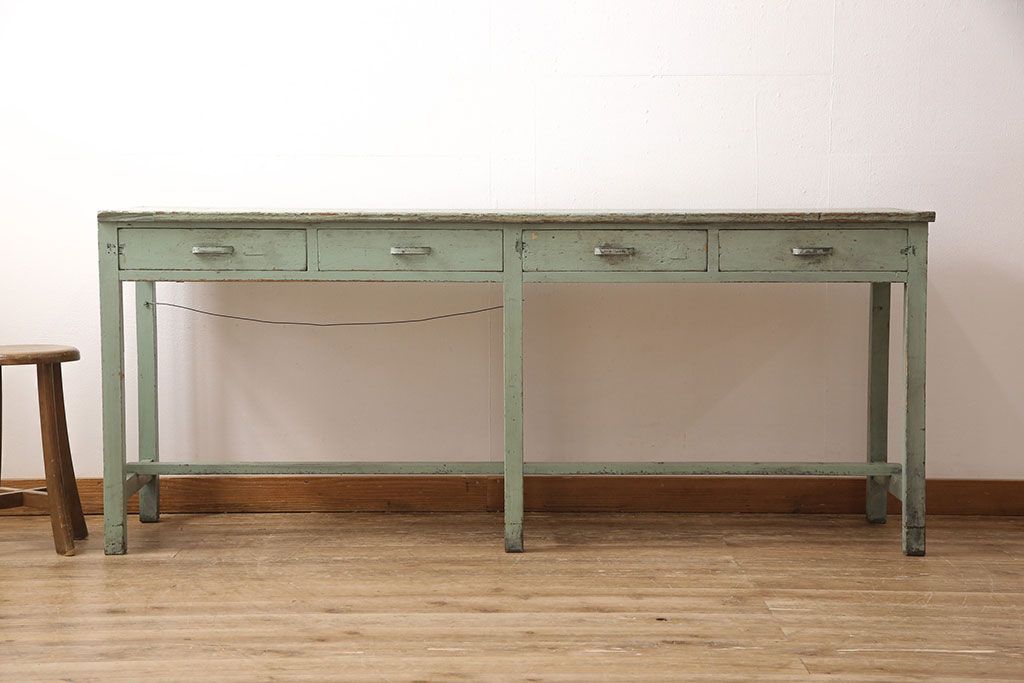 古家具> 古家具-テーブル > ヴィンテージ家具 インダストリアルなペイントカウンターテーブル(カウンターデスク、机、在宅ワーク、在宅用作業台)(R-053277)
