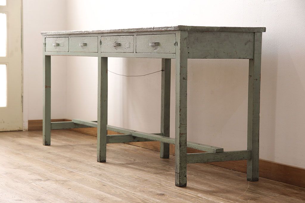 デスク> ワークデスク > ヴィンテージ家具 インダストリアルなペイントカウンターテーブル(カウンターデスク、机、在宅ワーク、在宅用作業台)(R-053277)