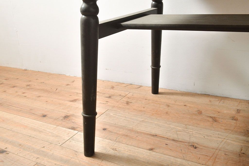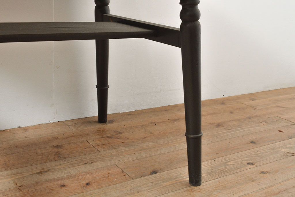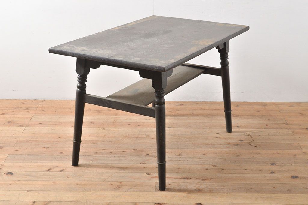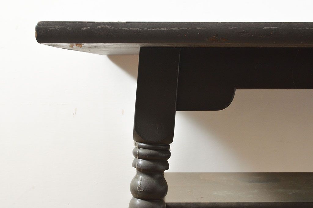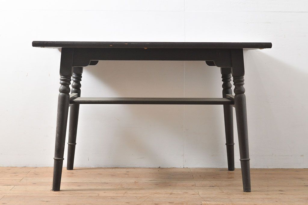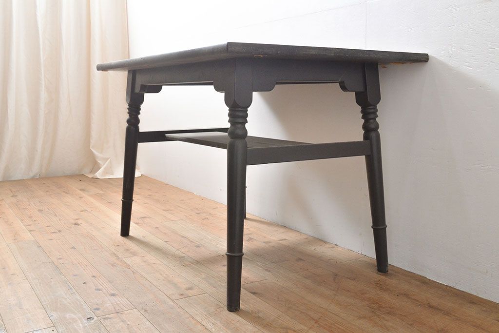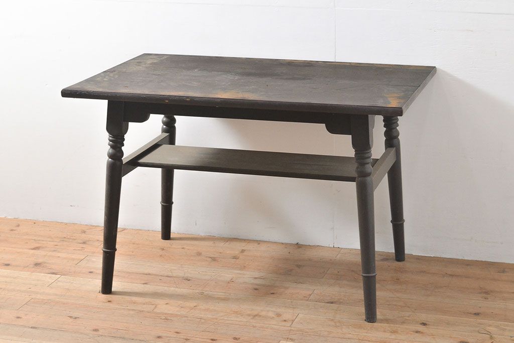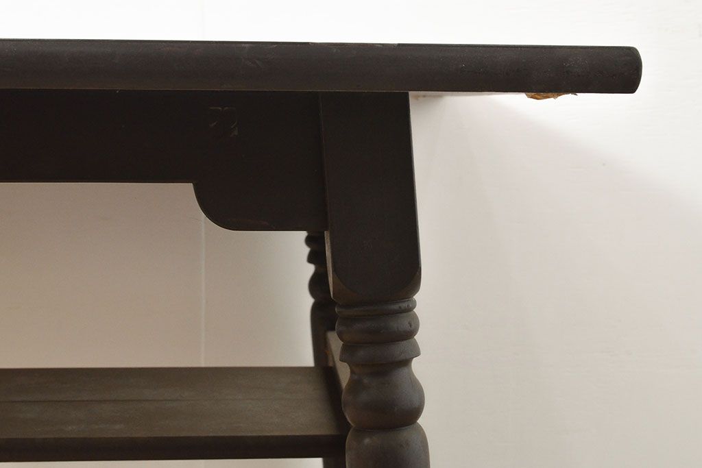 テーブル> 4人用ダイニングテーブル > ビンテージ家具 松本民芸家具 挽き物加工の意匠が上品なアクセントになる棚付きダイニングテーブル(食卓、2人掛け、4人掛け、ヴィンテージ)(R-053212)