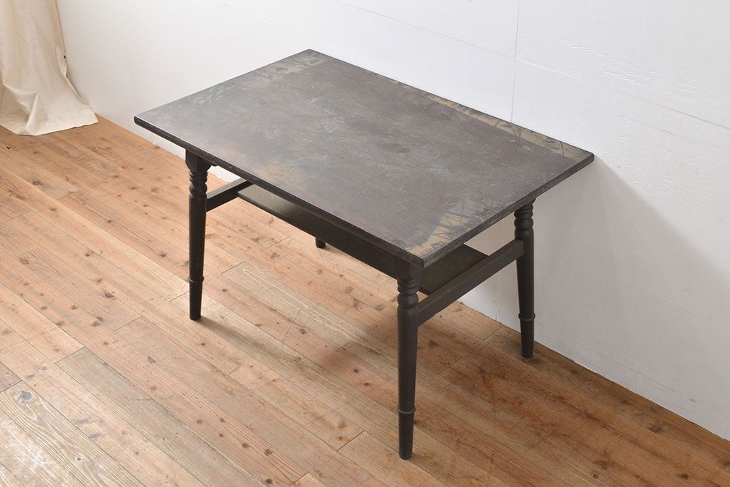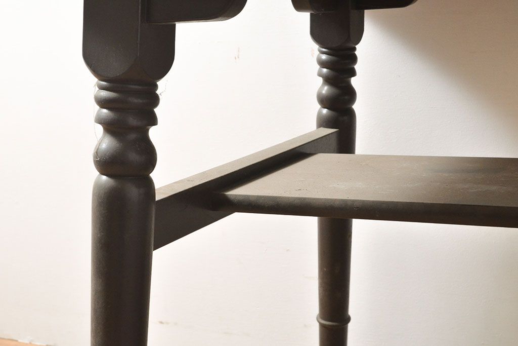 民芸家具 > ビンテージ家具 松本民芸家具 挽き物加工の意匠が上品なアクセントになる棚付きダイニングテーブル(食卓、2人掛け、4人掛け、ヴィンテージ)(R-053212)