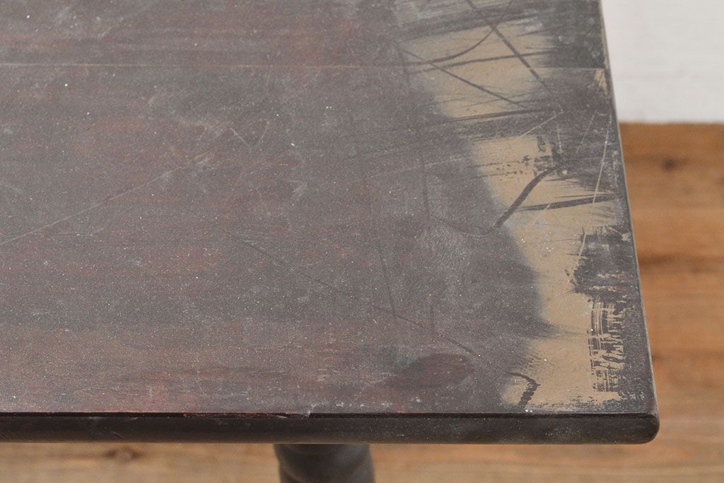 テーブル> 2人用ダイニングテーブル > ビンテージ家具 松本民芸家具 挽き物加工の意匠が上品なアクセントになる棚付きダイニングテーブル(食卓、2人掛け、4人掛け、ヴィンテージ)(R-053212)