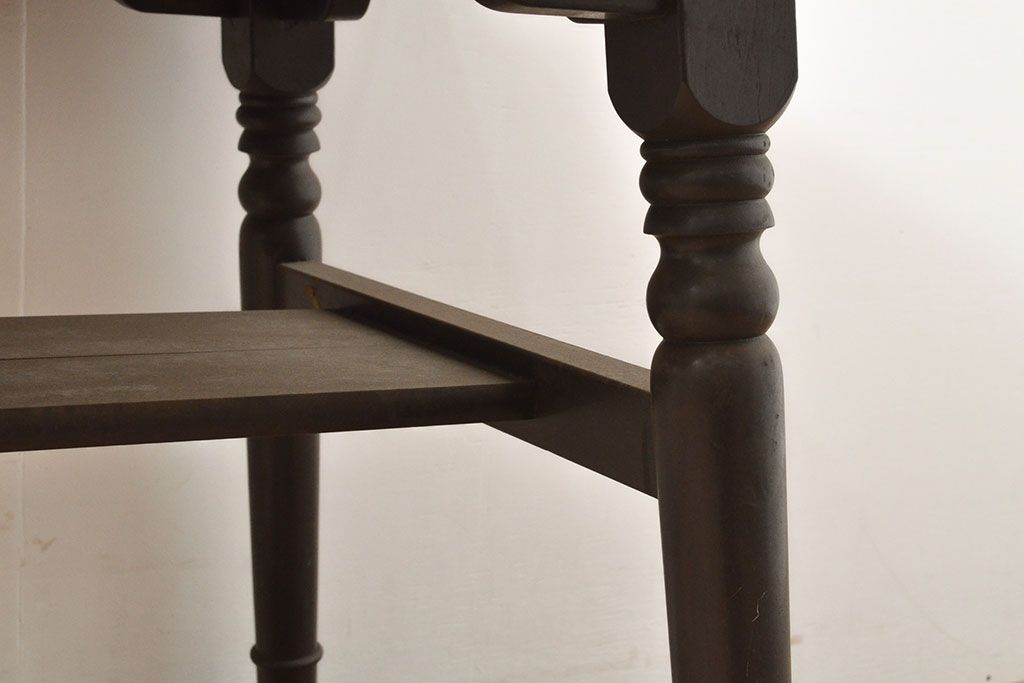 ビンテージ家具 松本民芸家具 挽き物加工の意匠が上品なアクセントになる棚付きダイニングテーブル(食卓、2人掛け、4人掛け、ヴィンテージ)(R-053212)です。