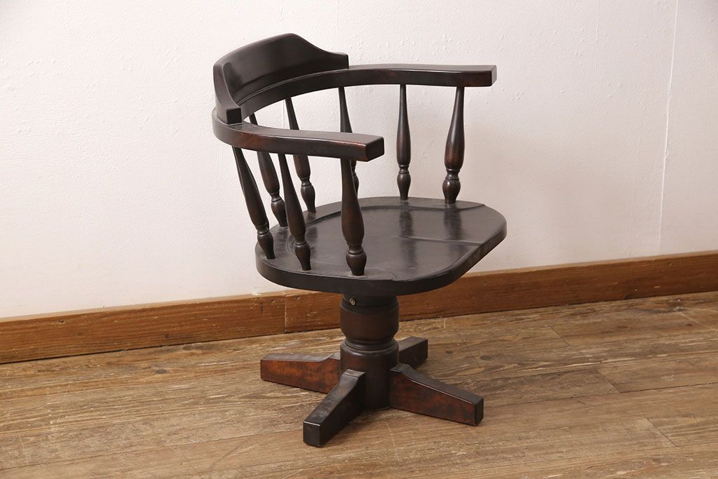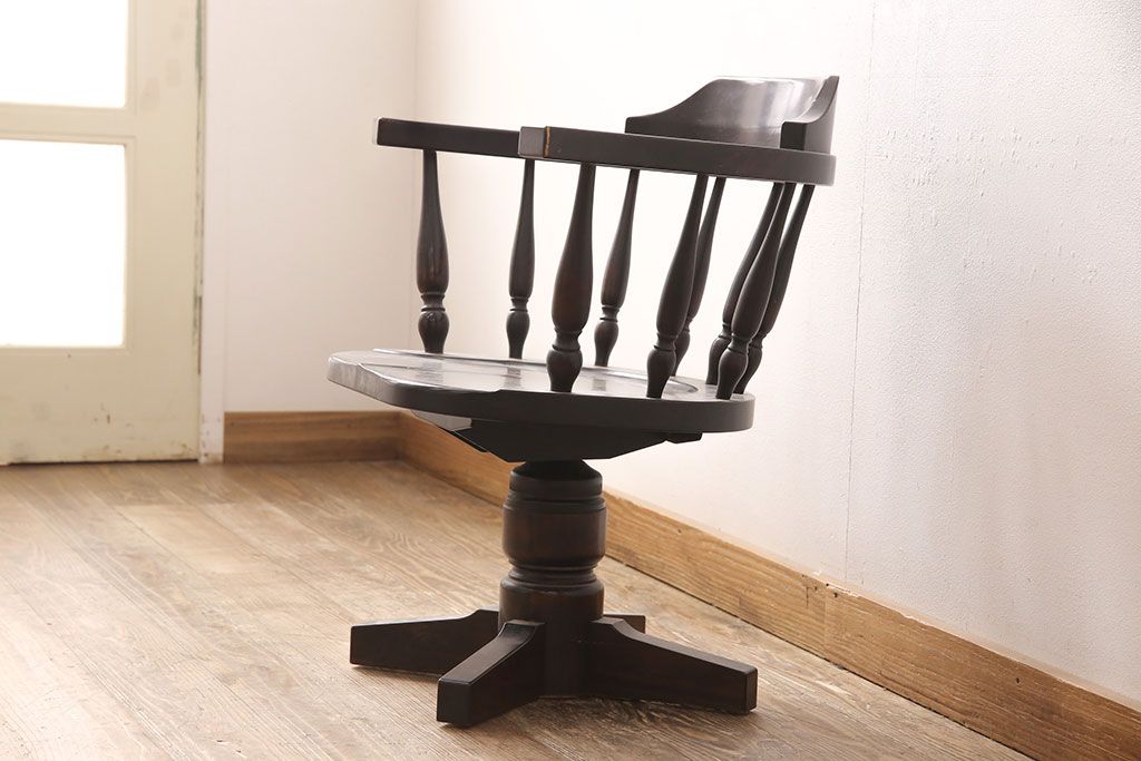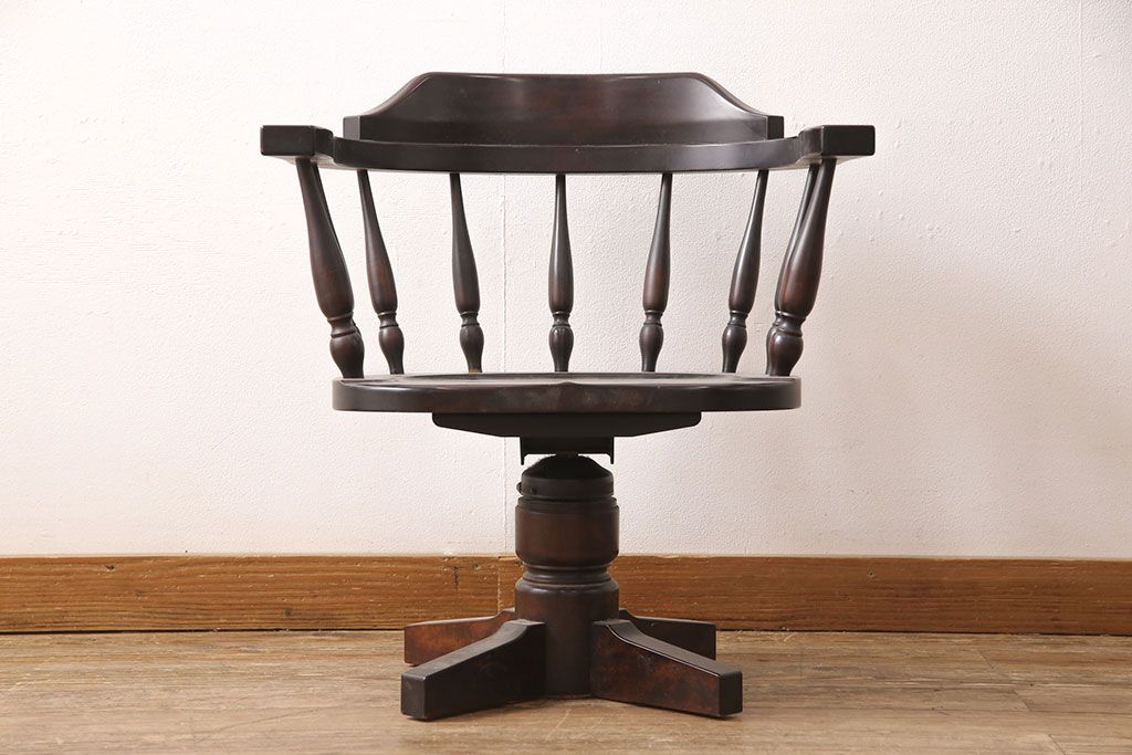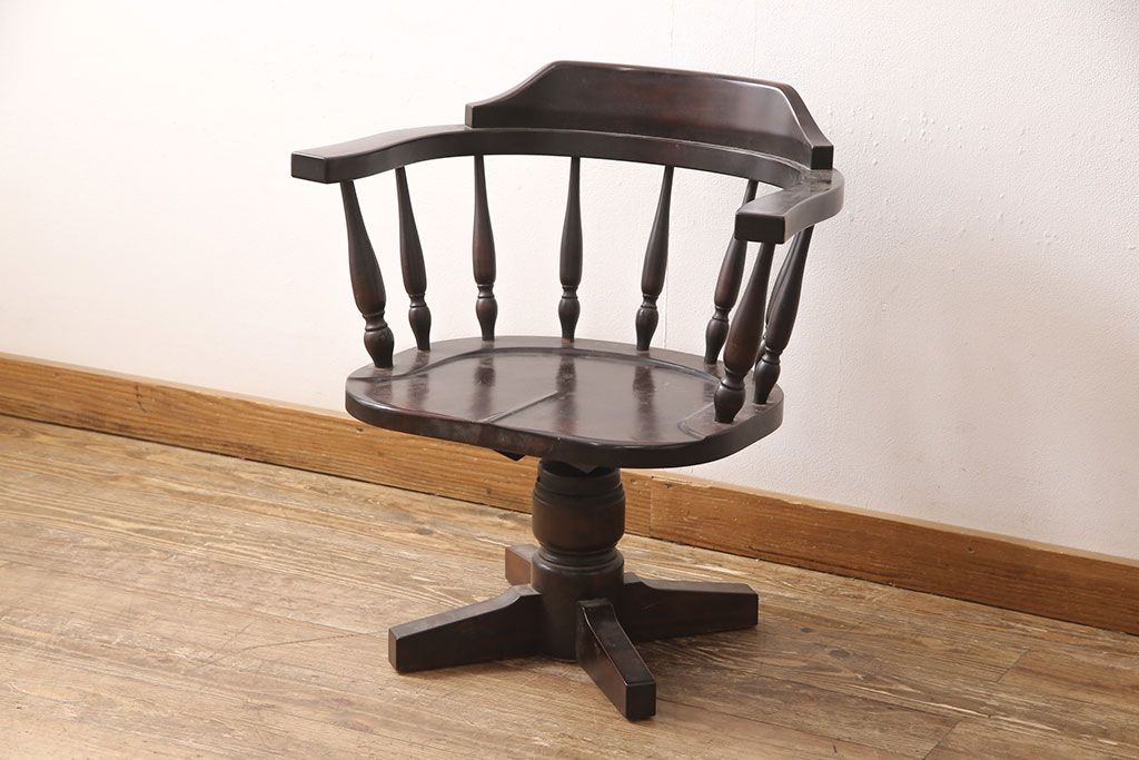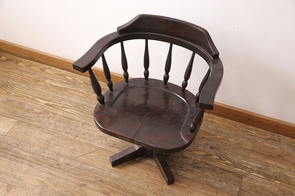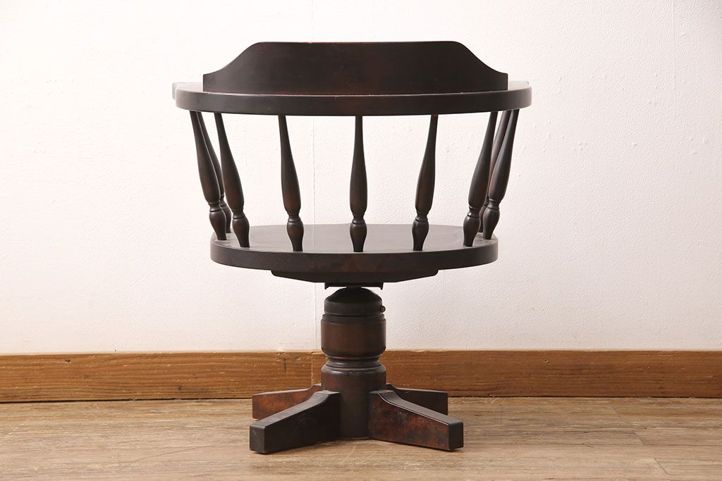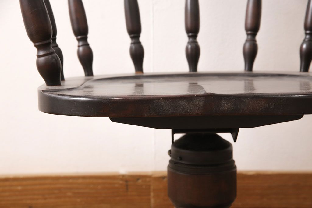 椅子・ベンチ> 回転椅子 > 和製ビンテージ 希少 絶版品 北海道民芸家具 細部までこだわりが感じられるデスクチェア(椅子、板座チェア、ヴィンテージ)(R-053180)