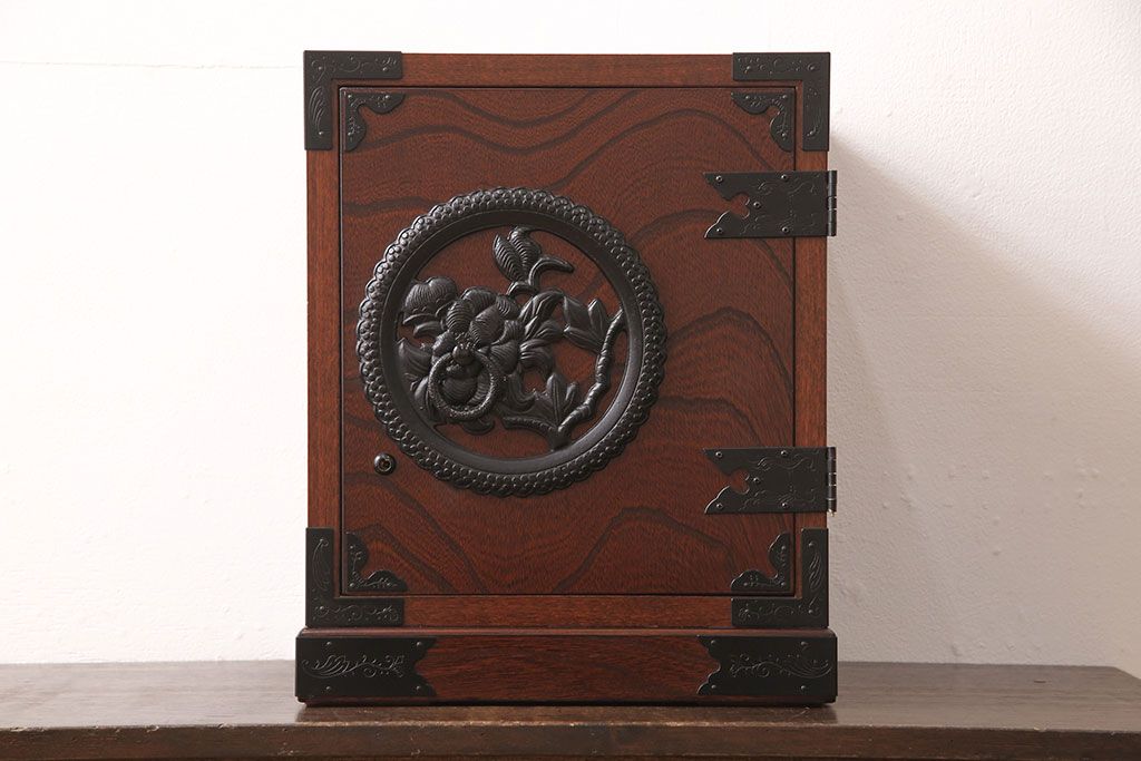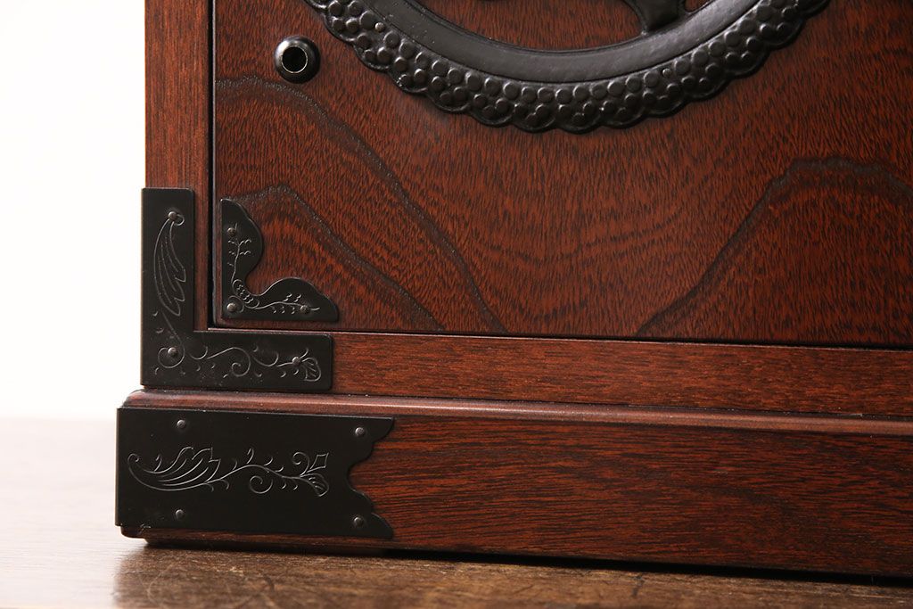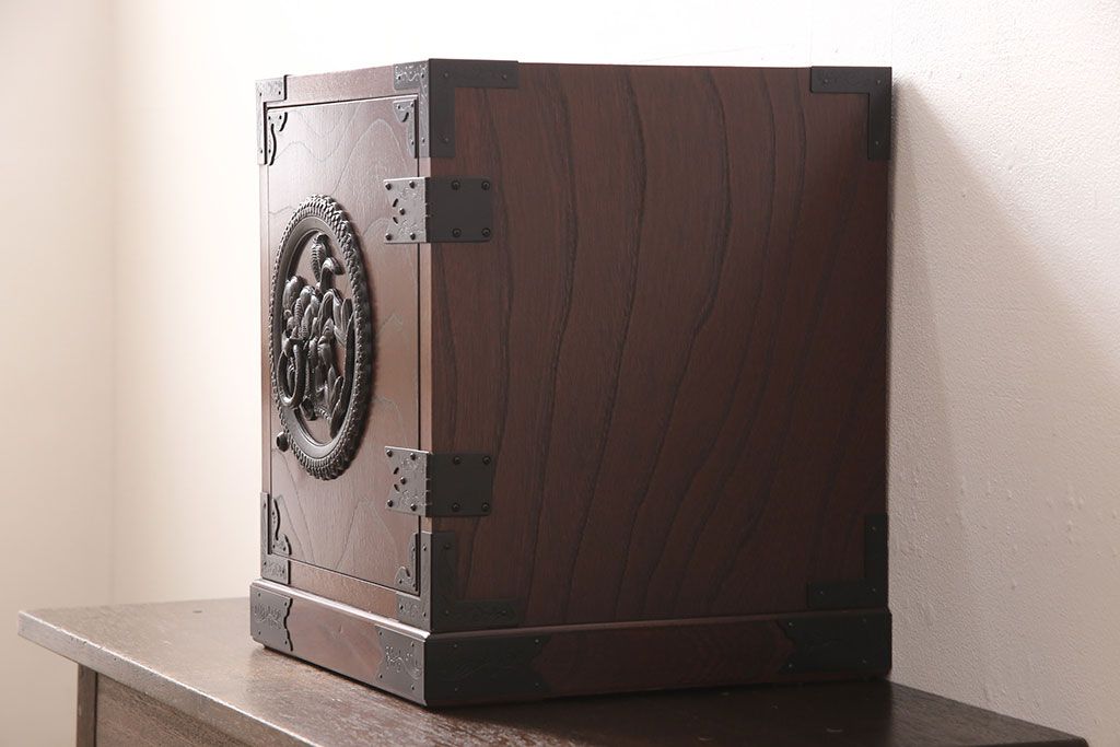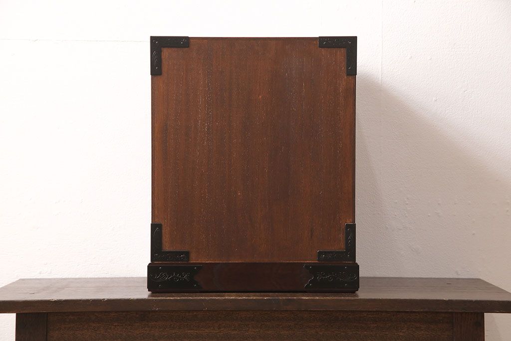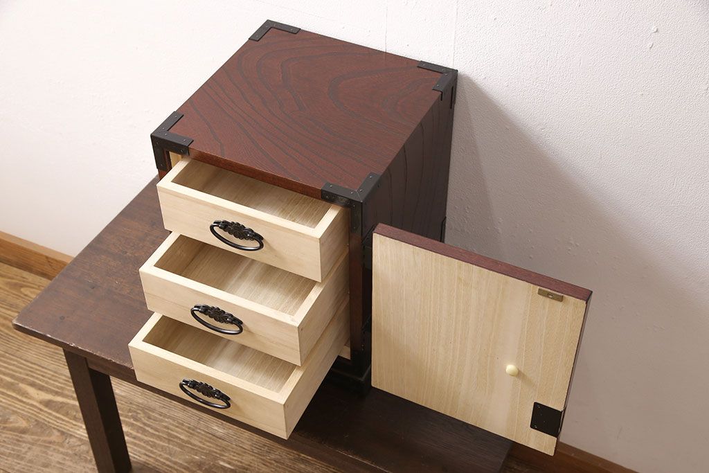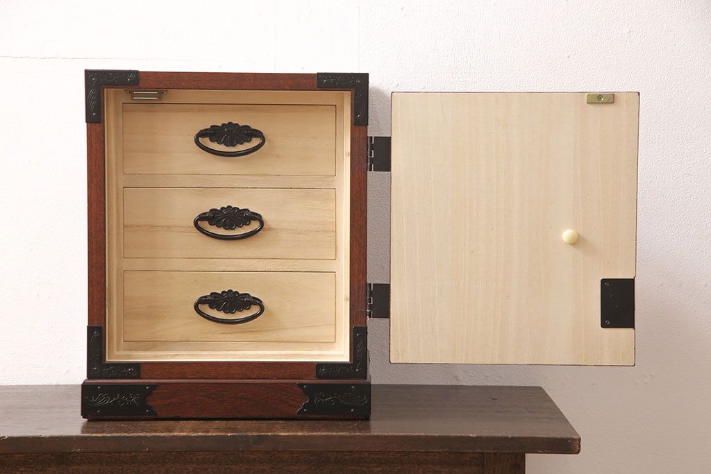 小物収納・トランク> 小引き出し > 中古 美品 手造り民芸家具 存在感のある金具が魅力的な片開き戸付き小引き出し(小箪笥、小たんす、小抽斗、卓上収納、小物収納)(R-053274)
