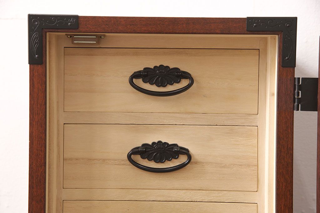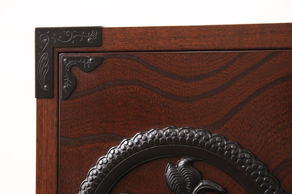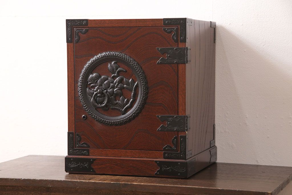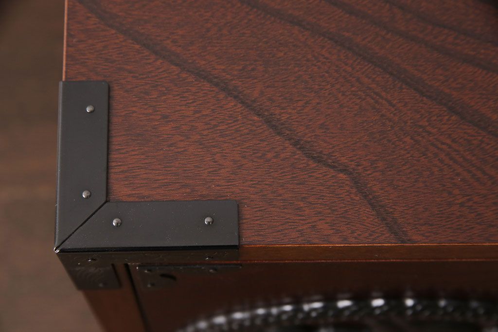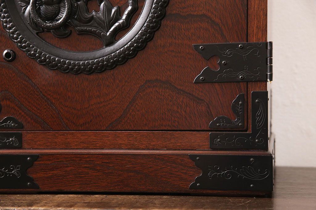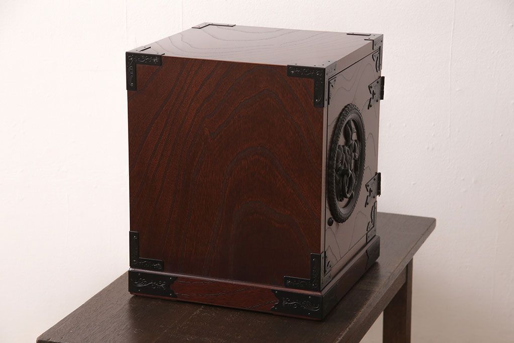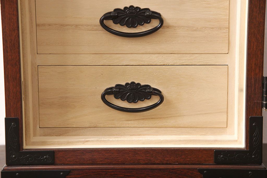 小物収納・トランク> 小引き出し > 中古 美品 手造り民芸家具 存在感のある金具が魅力的な片開き戸付き小引き出し(小箪笥、小たんす、小抽斗、卓上収納、小物収納)(R-053274)