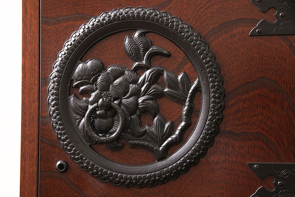 和箪笥> 小箪笥 > 中古 美品 手造り民芸家具 存在感のある金具が魅力的な片開き戸付き小引き出し(小箪笥、小たんす、小抽斗、卓上収納、小物収納)(R-053274)
