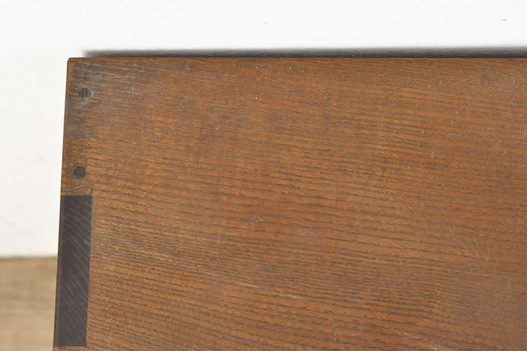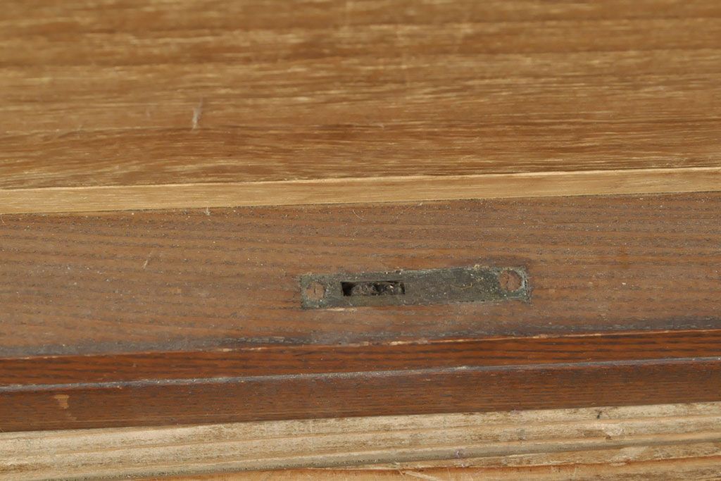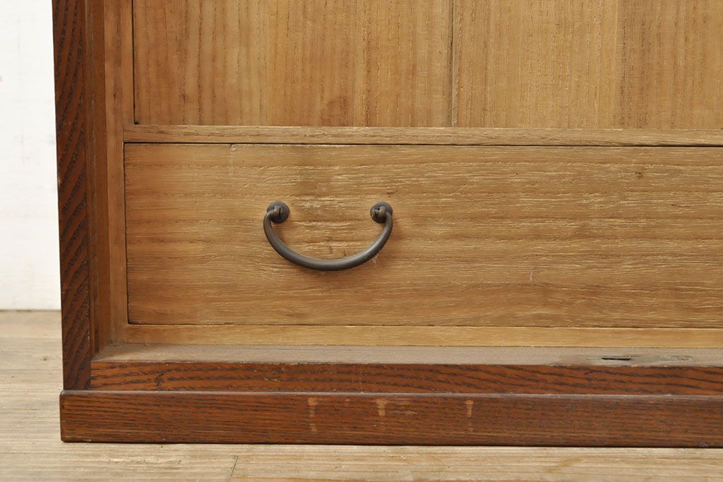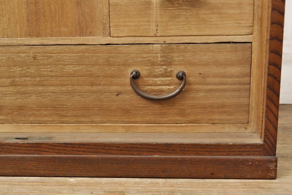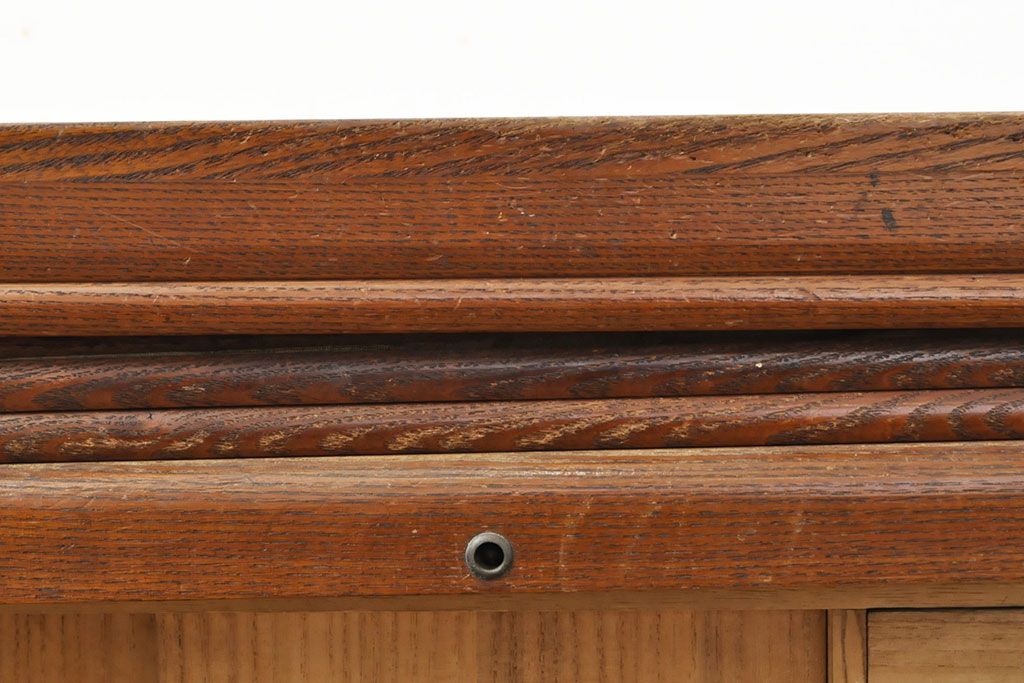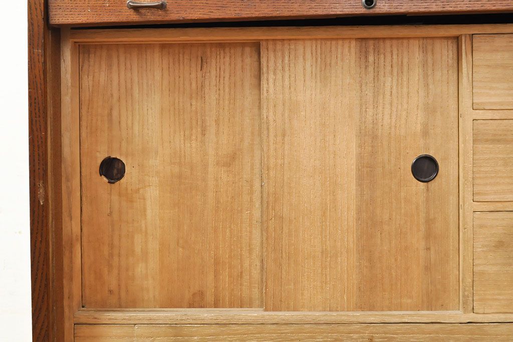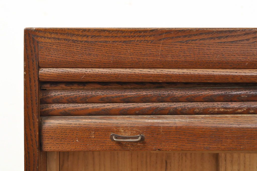 和製アンティーク 上手物 指物工芸家具 総栓材 明るい木色と深みのある木色のコントラストが映えるシャッター収納棚(蛇腹、小引き出し)(R-052712)