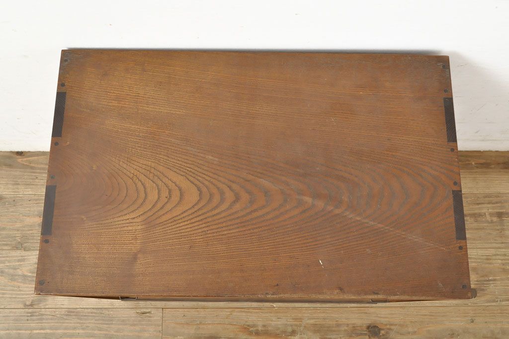 和製アンティーク 上手物 指物工芸家具 総栓材 明るい木色と深みのある木色のコントラストが映えるシャッター収納棚(蛇腹、小引き出し)(R-052712)です。