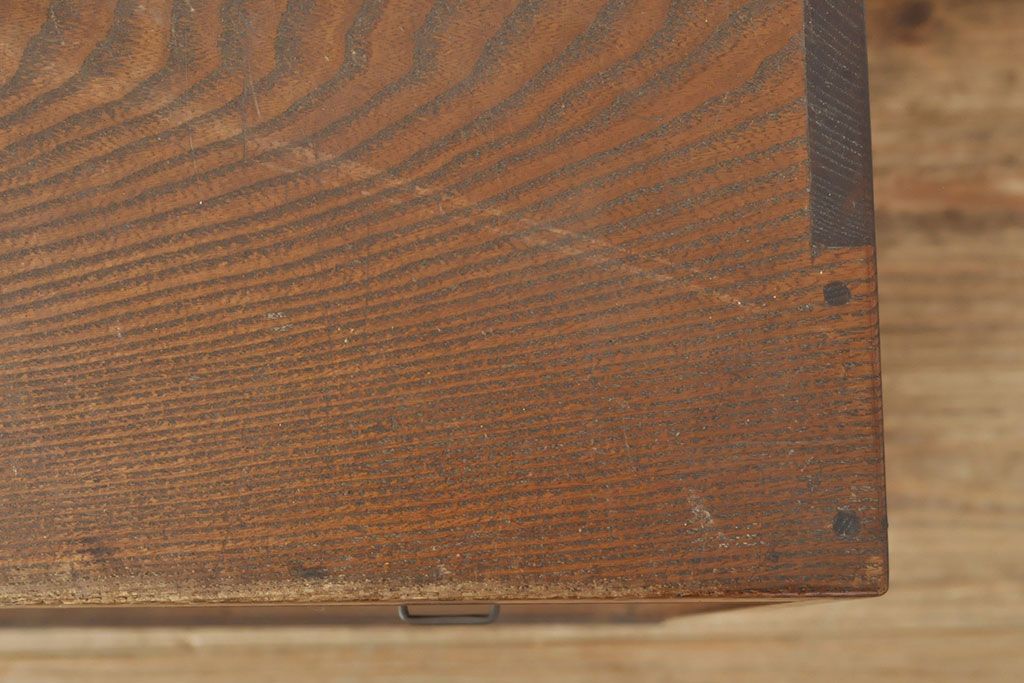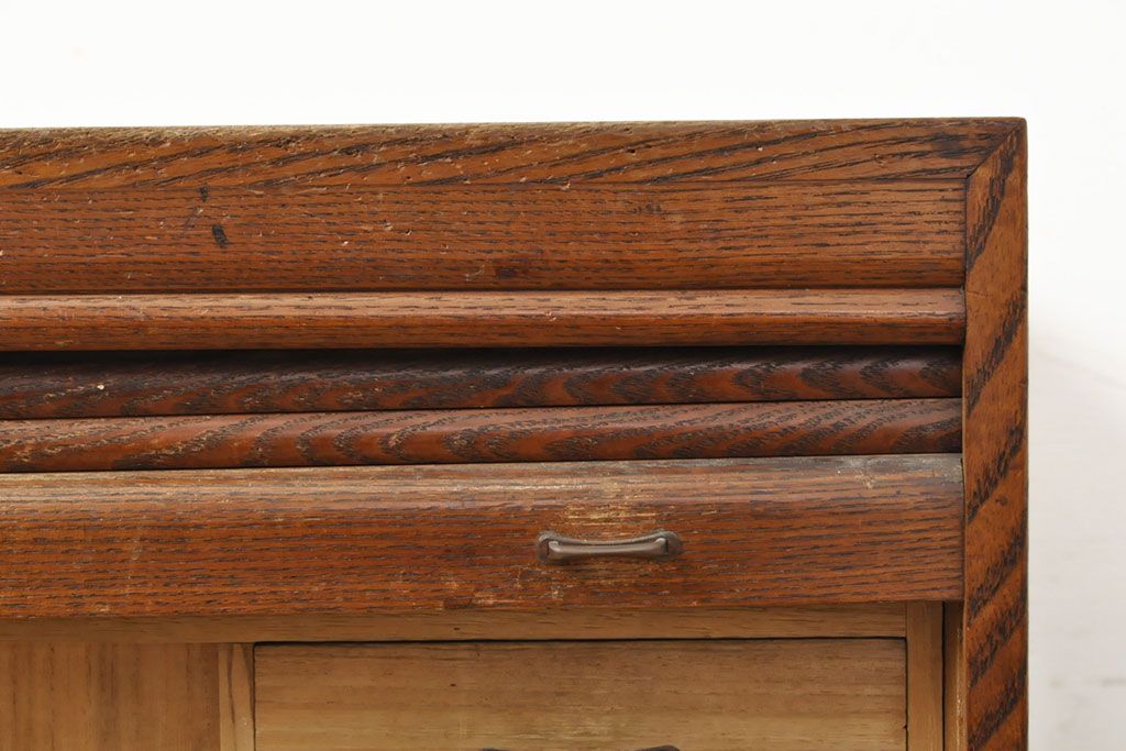 小物収納・トランク> 小引き出し > 和製アンティーク 上手物 指物工芸家具 総栓材 明るい木色と深みのある木色のコントラストが映えるシャッター収納棚(蛇腹、小引き出し)(R-052712)